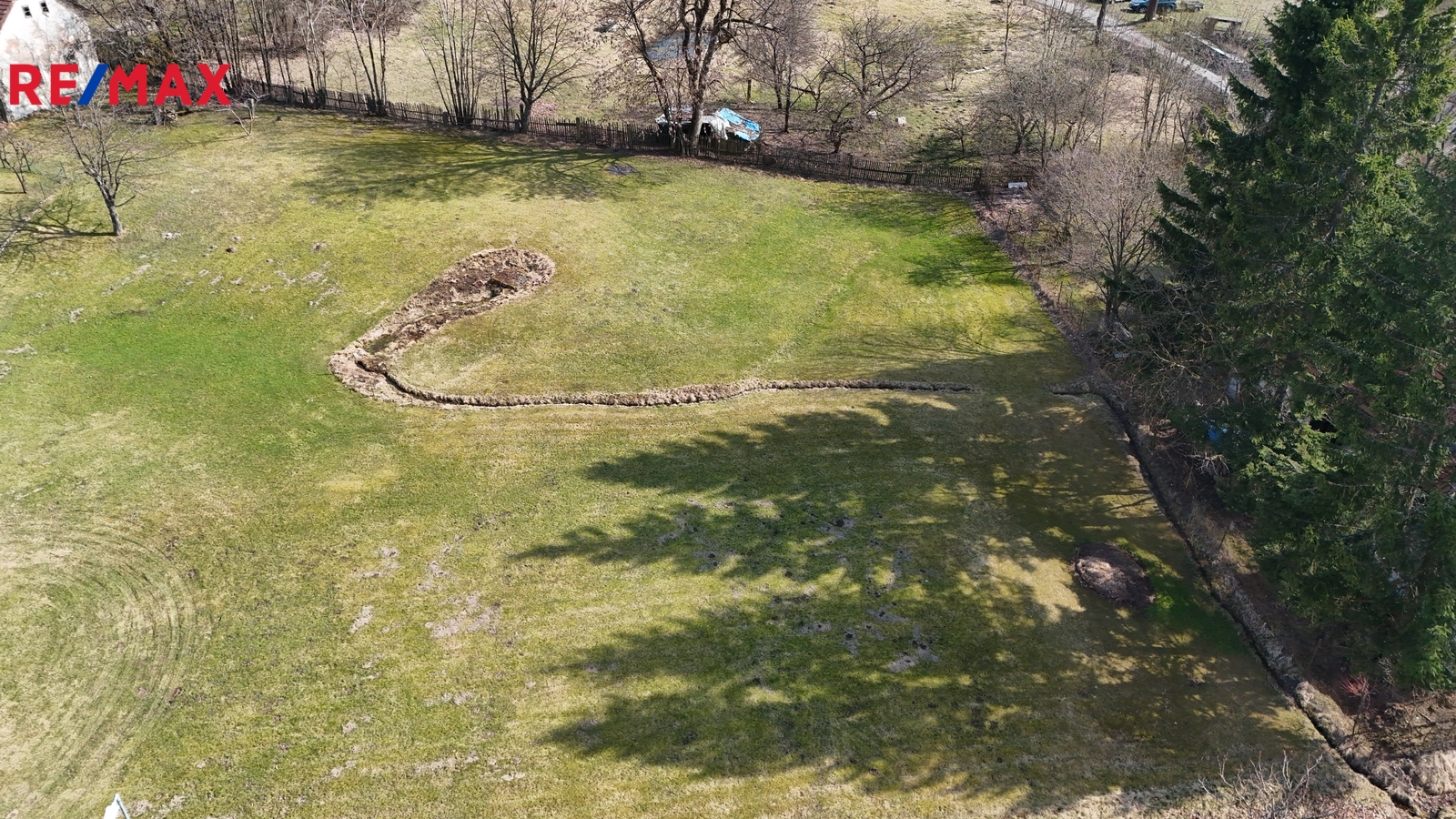 Výstavba domu je povolena v přední části pozemku, který se mírně svažuje.
