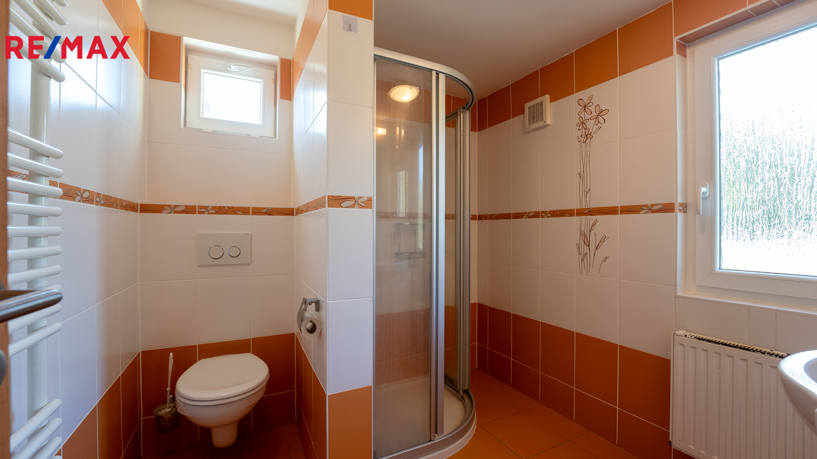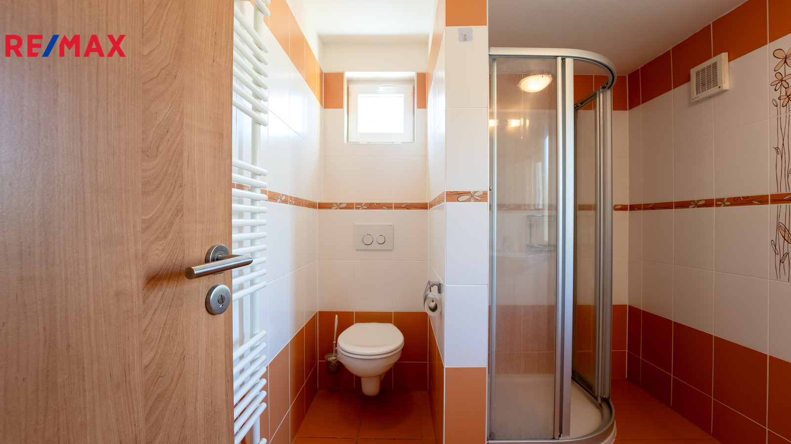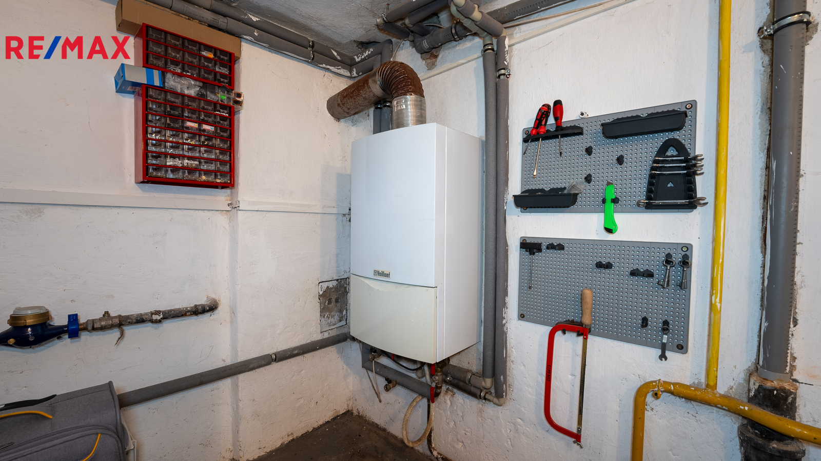 Dispozice domu nabízí praktické uspořádání místností, přičemž velký podkrovní pokoj je ideální například jako dětský pokoj, herna nebo pracovna. V domě se nachází jedna koupelna a dvě WC, což zvyšuje komfort pro vícečlennou domácnost. Nemovitost je částečně podsklepená a nabízí tak další úložné či technické zázemí.