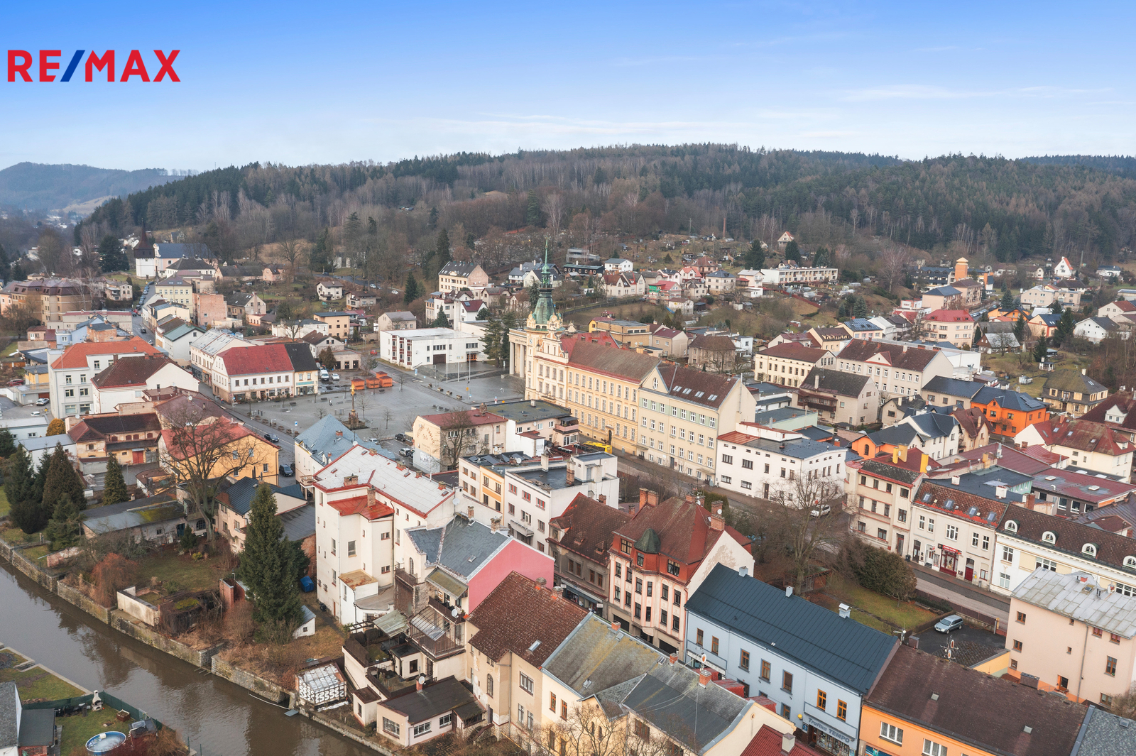 Dům se nachází přímo v centru města, v pěší dostupnosti kompletní občanské vybavenosti — obchody, služby, restaurace, škola, školka, zdravotnické zařízení i autobusové spojení.