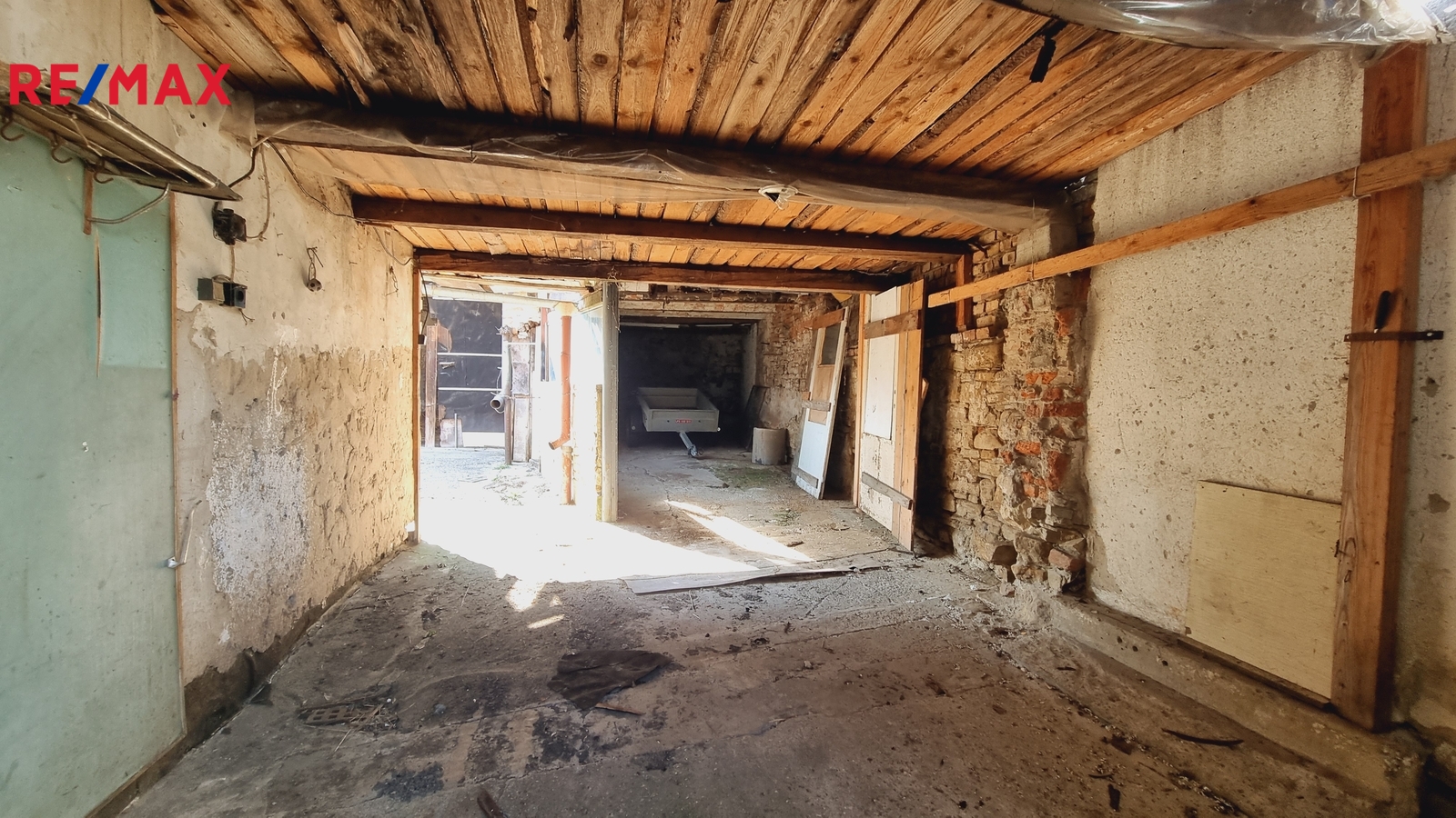 Na dvoře se nachází původní stodola o výměře cca 55 m², která nabízí další využití například jako dílna, sklad nebo pro budoucí přestavbu. Vedle domu je zajištěn vjezd na pozemek. Dlážděný dvorek poskytuje dostatek soukromí pro venkovní posezení. Před domem jsou vysázeny keře, které zajišťují částečné soukromí od ulice.