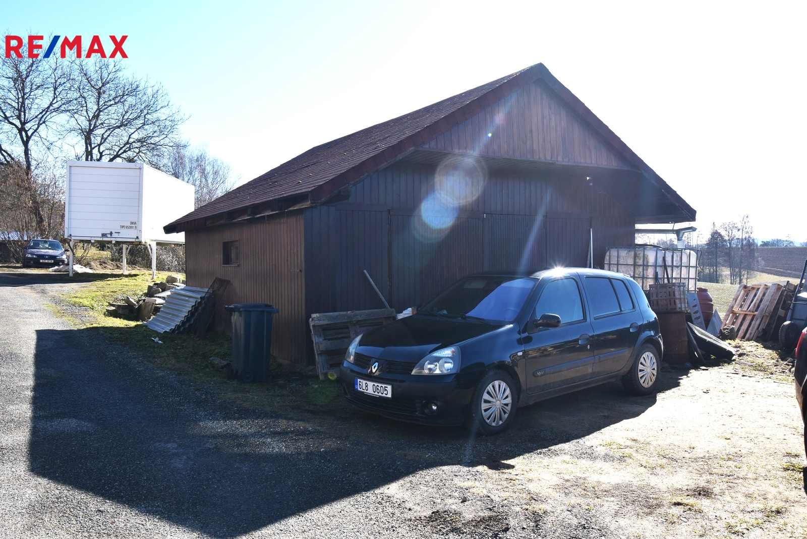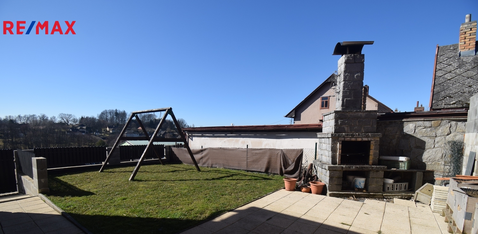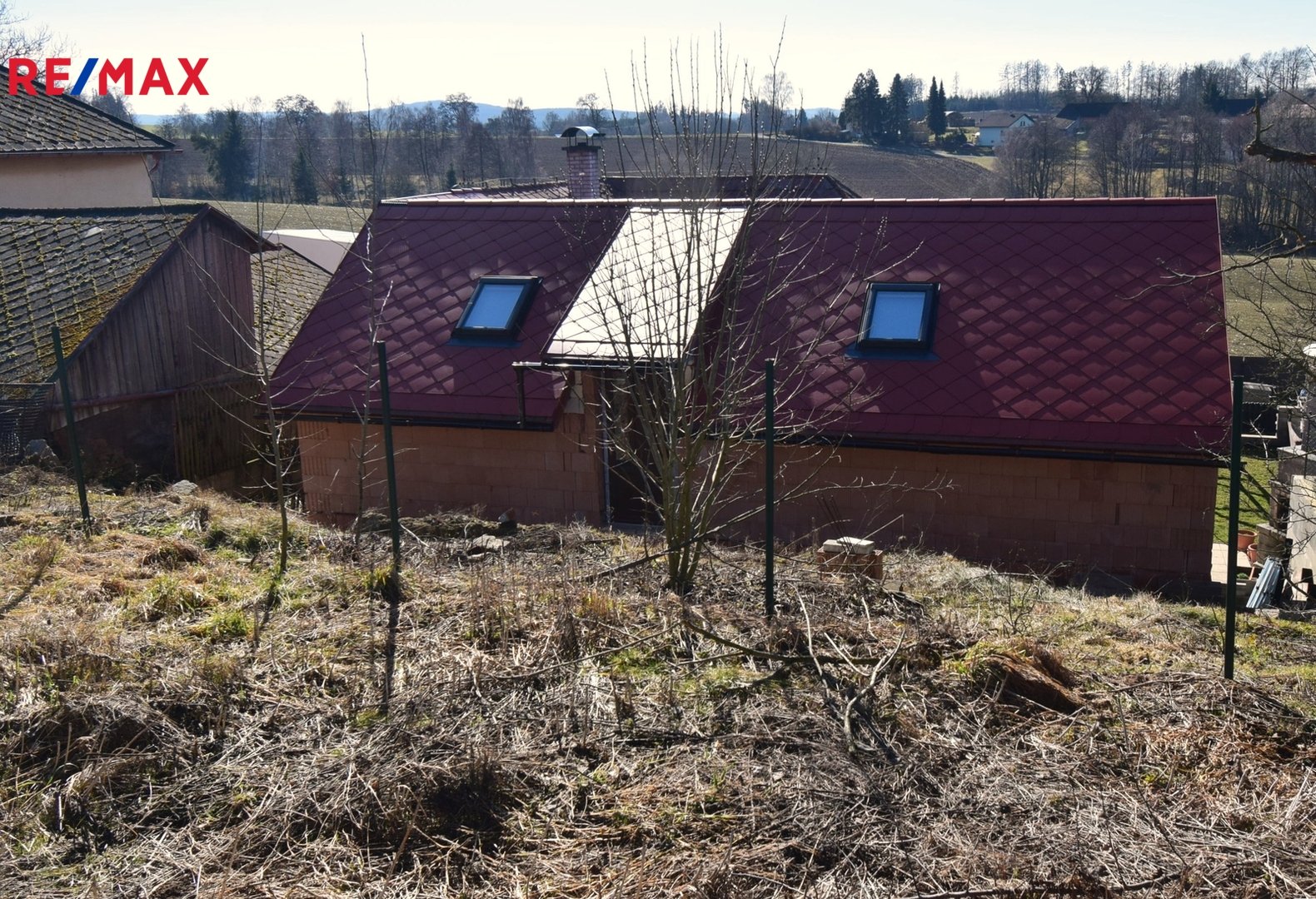 Před domem je udržovaná předzahrádka. Za domem je druhá část zahrady. Zde musíme konstatovat, že je ve svahu s několika terasami. Další část pozemku je přes komunikaci u cesty. V jedné části je i současná, využívaná garáž.