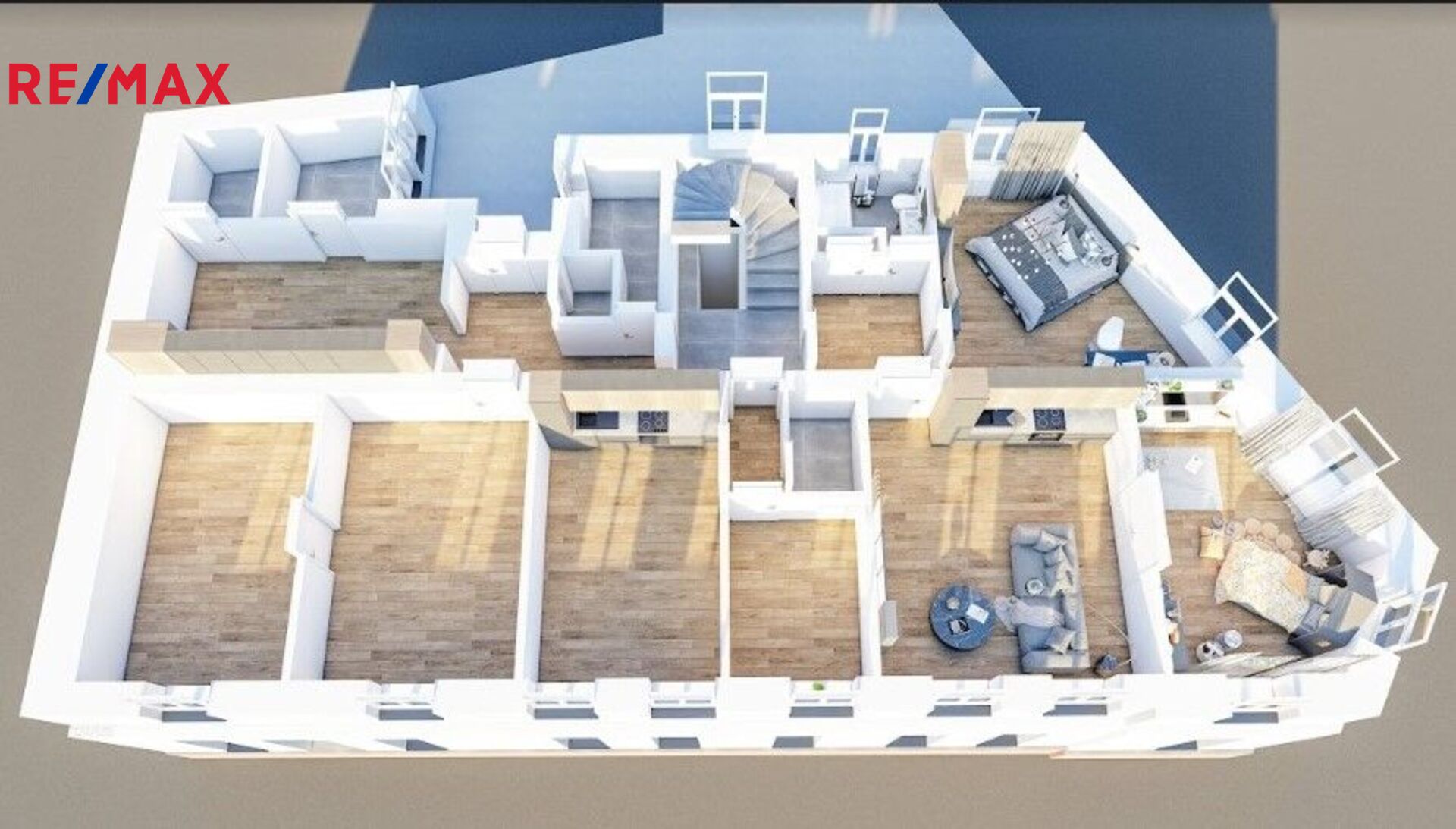 Bytové jednotky o velikosti jsou umístěny ve 2.-4.NP. Jde o 6 velkometrážních bytů (3+1) o výměře 3x97,3 m2 a 3x85,6 m2 (vždy po jednom na každém podlaží. Všechny byty jsou nyní pronajaty (zajímavý výnos). Vstup do bytové části je samostatný a oddělený od obchodní části. Vstupní prostor a chodba je po revitalizaci. Byty lze koupit i jednotlivě nebo jako balíček dohromady.