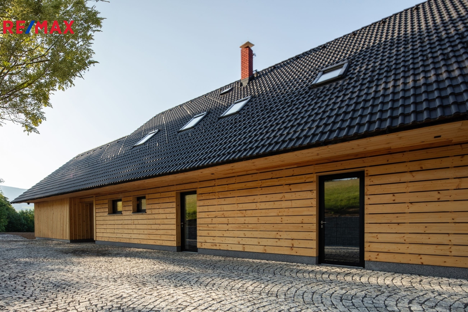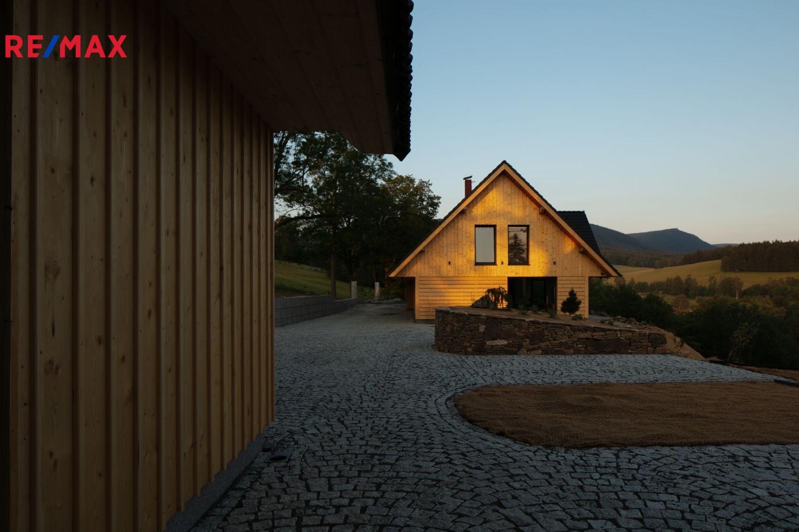 Dominantou domu je čistý architektonický styl s dřevěným obkladem, sedlovou střechou a prosvětlenými prostory orientovanými na jih. Díky promyšlenému řešení je dům energeticky úsporný. Mírně svažitý pozemek plynule přechází v okrasnou zahradu s trvalými porosty, která podtrhuje klidnou atmosféru celého místa.