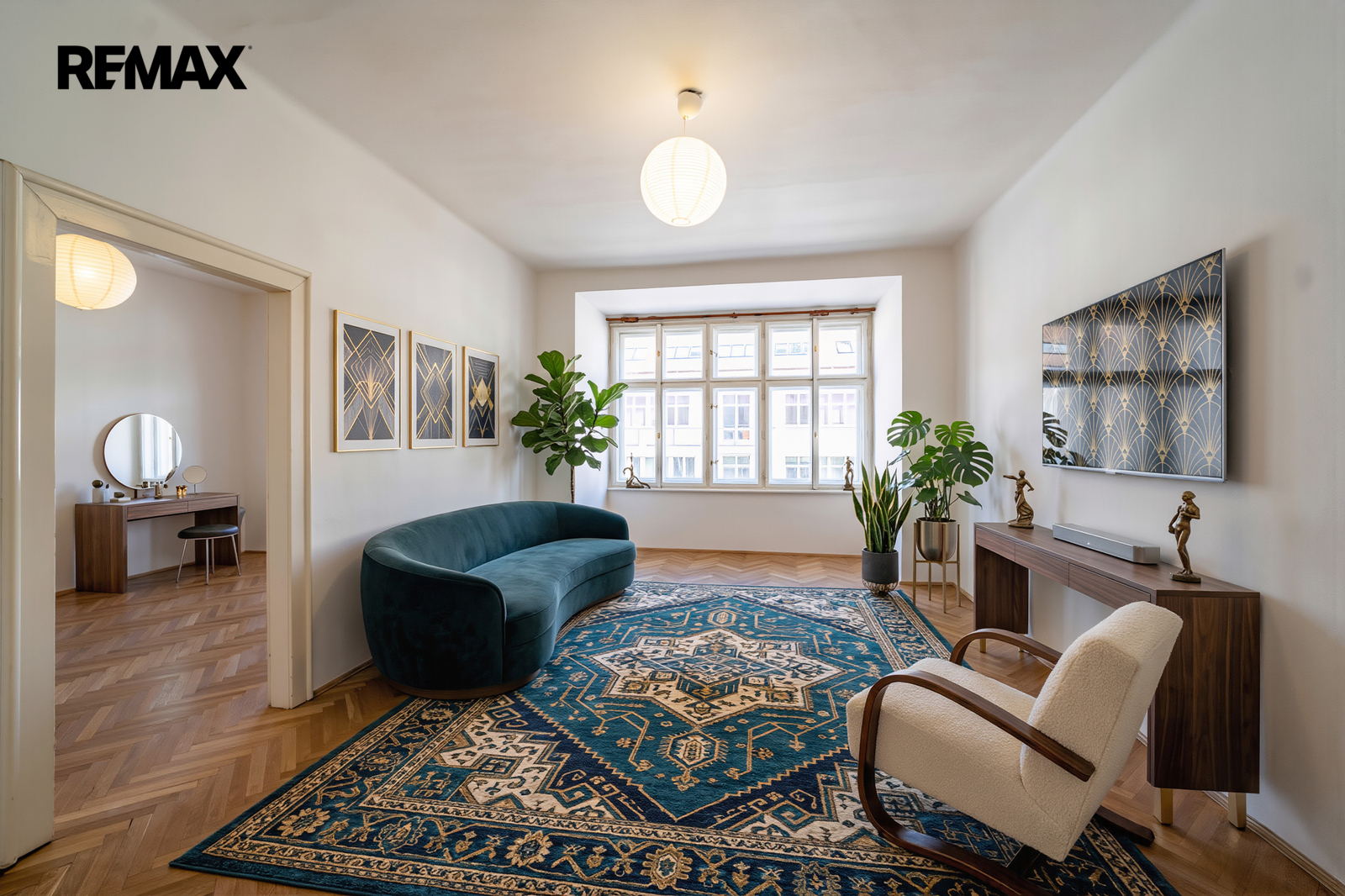 Nabízíme k prodeji prostorný byt o velikosti 134 m² užitné plochy (+ dva balkóny) v prvorepublikovém domě v jedné z nejžádanějších lokalit Prahy.