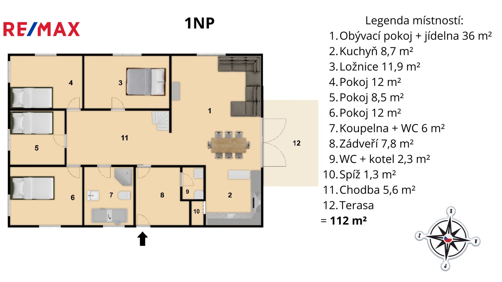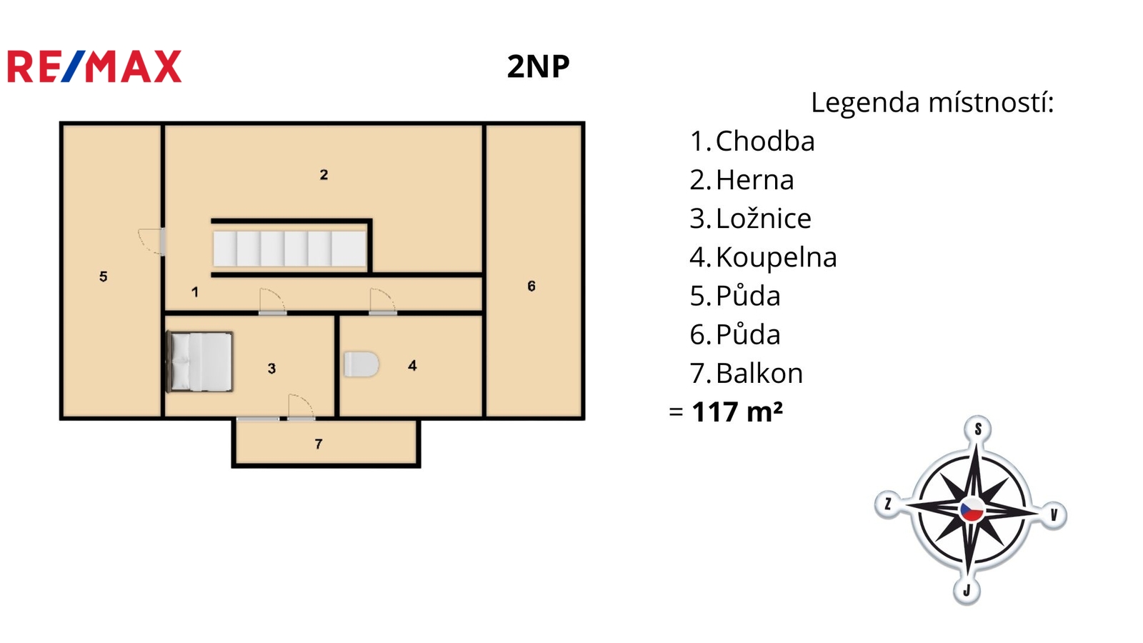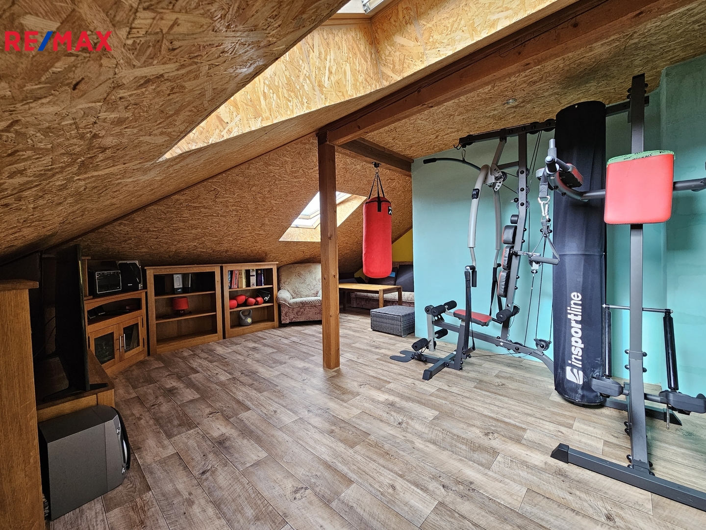 Dům díky své velikosti nabízí možnost v podstatě dvougeneračního bydlení. Přízemí domu je dispozičně 5kk. Jsou zde tři pokoje, ložnice, prostorná předsíň, koupelna s WC a technická místnost s dalším WC a umyvadlem. Obývací pokoj se stylovým krbem je propojen s kuchyní a jídelnou s přímým vstupem na terasu, kde si můžete užívat západ slunce a která je ideálním místem pro rodinná posezení. Kuchyně je doplněna o spíž. V obytném podkroví domu naleznete spoustu dalšího prostoru. Na severní straně podkroví najdete ložnici se vstupem na balkon a koupelnu. Druhé křídlo podkroví Vám nabídne prostory, které se dají výhledově využít dle Vašich představ.