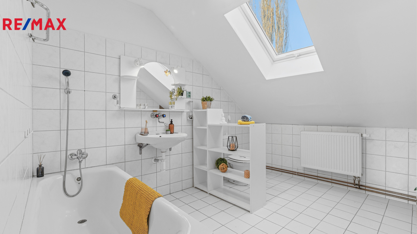 Praktickým doplňkem domu je půda poskytující další úložný prostor a garáž nebo skladovací prostor s vlastním vjezdem. Parkování je možné také na zpevněné ploše pro dvě auta přímo na pozemku.