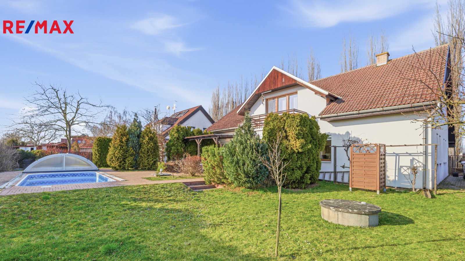 Velkou předností domu je zahrada poskytující dostatek soukromí i prostoru pro relaxaci. Dominantou je bazén s posuvným zastřešením, vyhřívaný tepelným čerpadlem, který umožňuje koupání po větší část roku. Na pozemku se nachází také studna pro zalévání zahrady, upravené okrasné porosty a venkovní udírna s grilem, ideální pro letní posezení s rodinou a přáteli.
