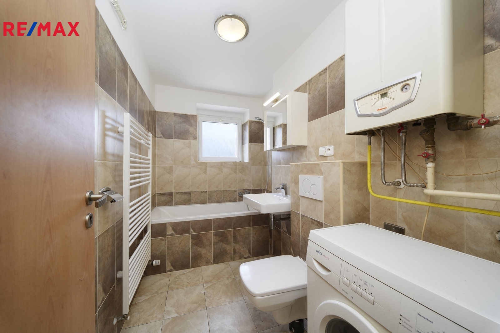 Ohřev vody i teplo v radiátorech zajišťuje plynový kotel.
