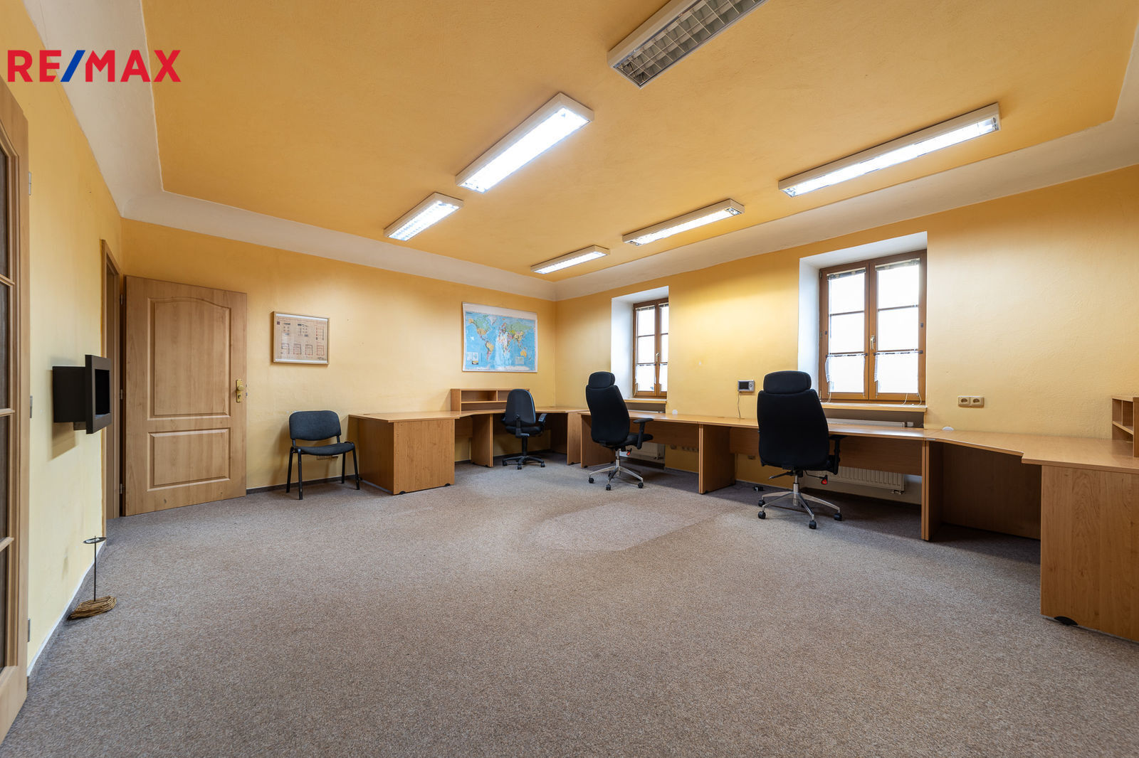 Bezpečnost: Objekt je zabezpečen alarmem, bezpečnostními dveřmi a kamerovým systémem (původně instalováno pro potřeby nadnárodní certifikační společnosti).