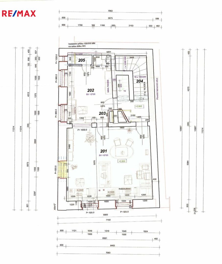 1. NP: Jednací místnost s kuchyňským koutem, samostatné WC, sklad a chodba s technickým zázemím.