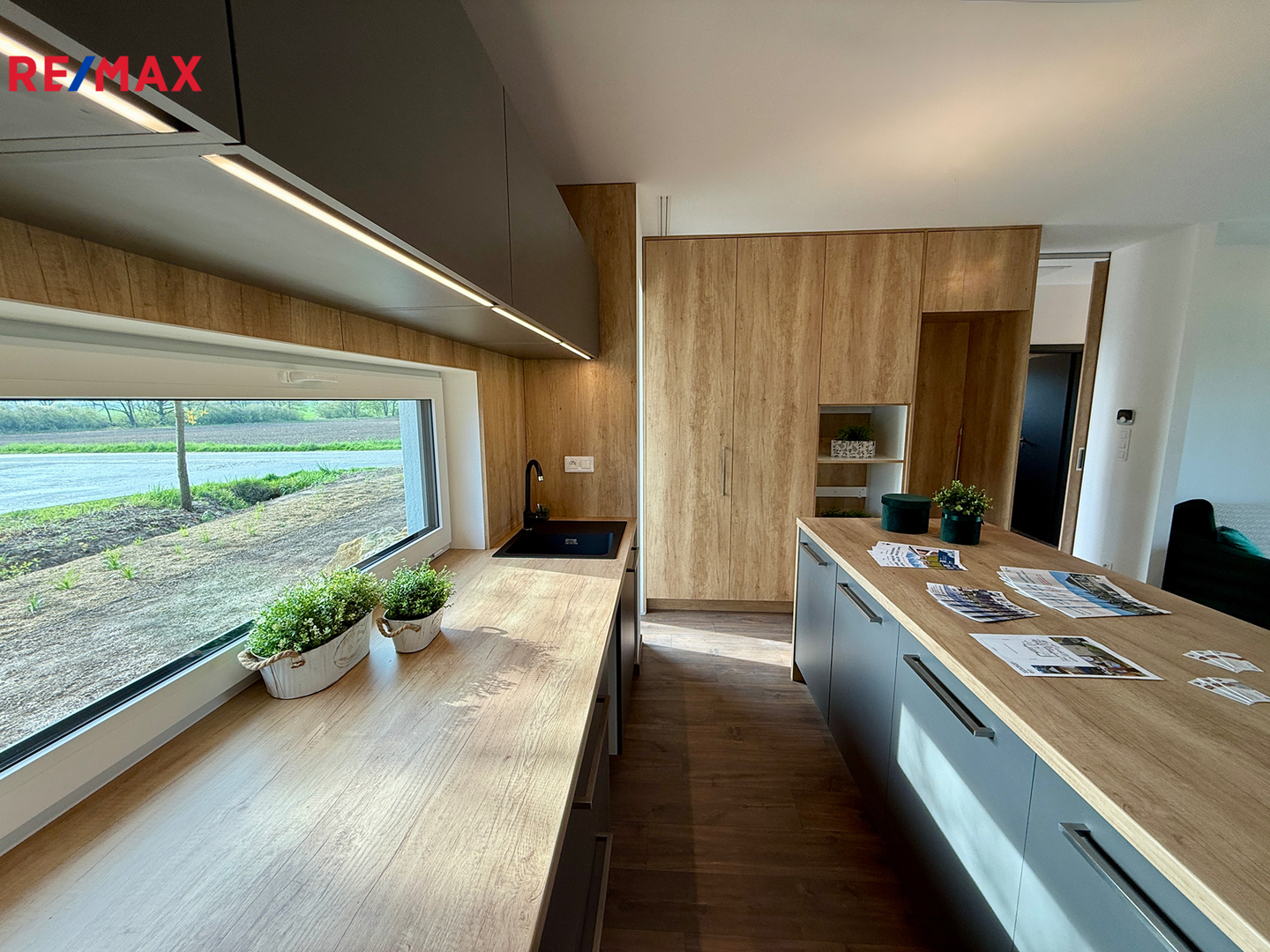 Interiér domu je promyšlený do posledního detailu. Kvalitní laminátové podlahy, velkoformátová dlažba, moderní dveře. Součástí vybavení je moderní kuchyňská linka bez spotřebičů a zařízená koupelna – snížená vana, umyvadlo se skříňkou, kulaté podsvícené zrcadlo a WC, zabudované kolejnice na záclony a závěsy. El. příprava na předokenní žaluzie. Interiér domu se může lišit dle standardu developera, doporučujeme osobní prohlídku nemovitosti.
