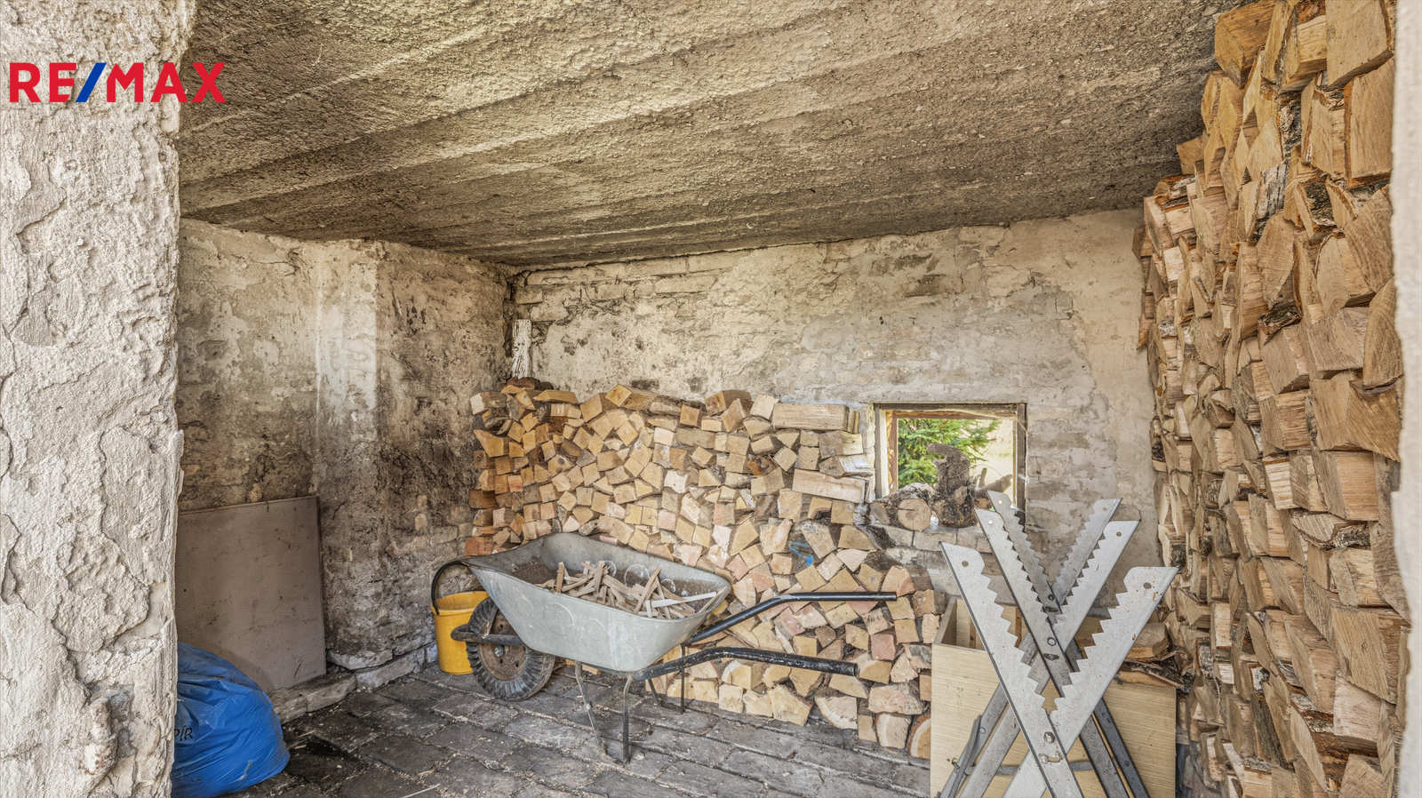 Na obytnou část přímo navazuje stodola o velikosti 59 m² a samostatná kůlna cca 16 m² umístěná v přední části pozemku. Tyto prostory společně vytváří funkční zázemí, které zásadně rozšiřuje využití celé nemovitosti. Součástí domu je také sklep pod koupelnou a půdní prostor vhodný k dalšímu využití. Právě tato kombinace dělá z nemovitosti něco víc než jen běžný rodinný dům.