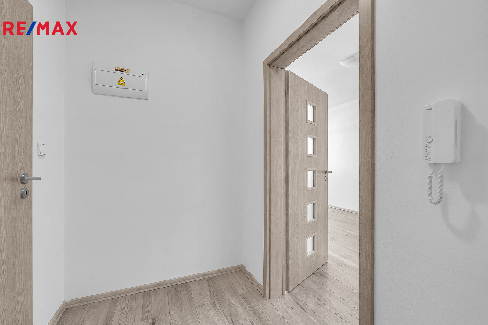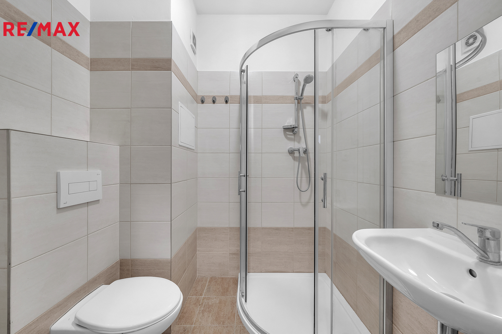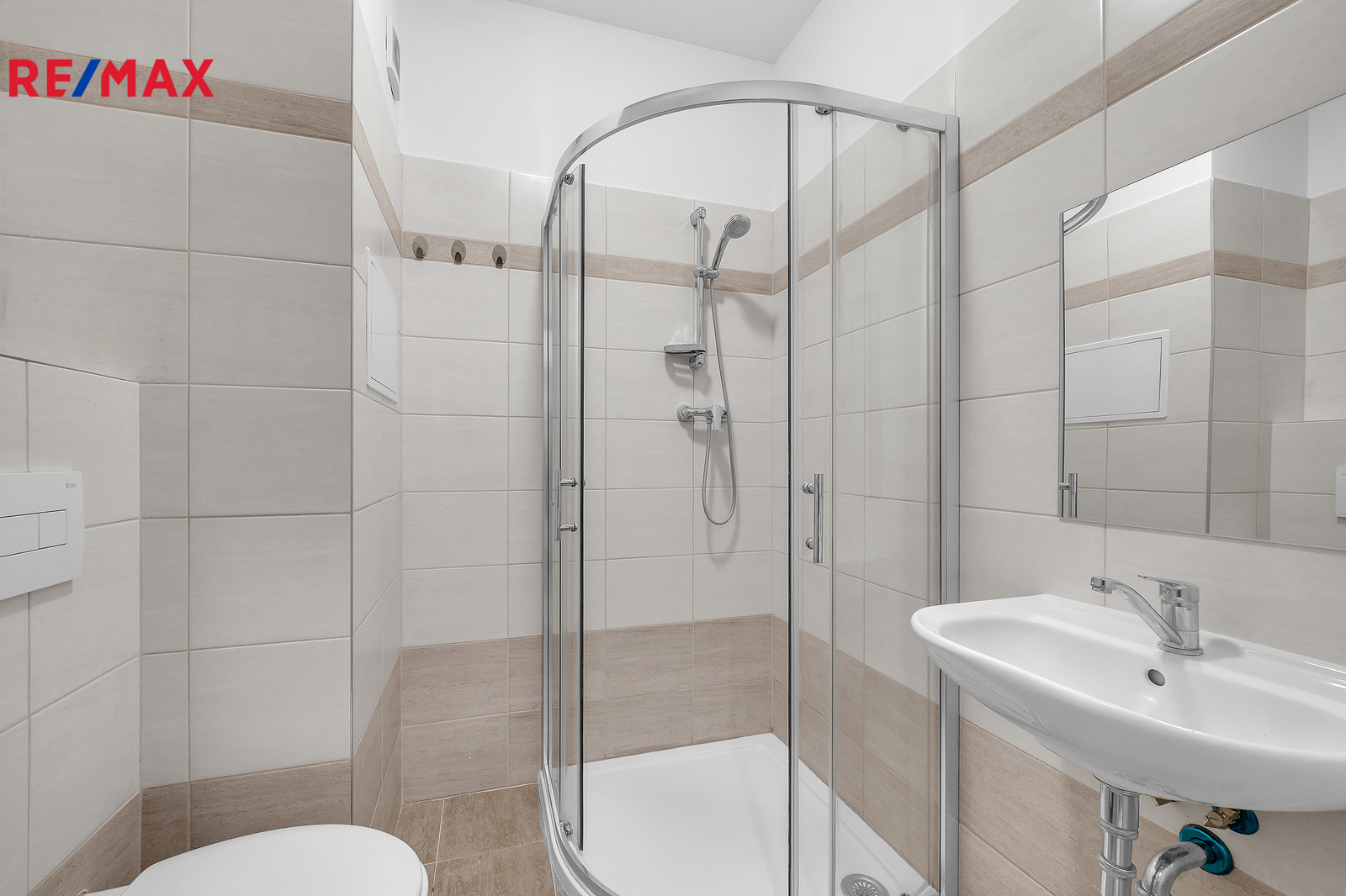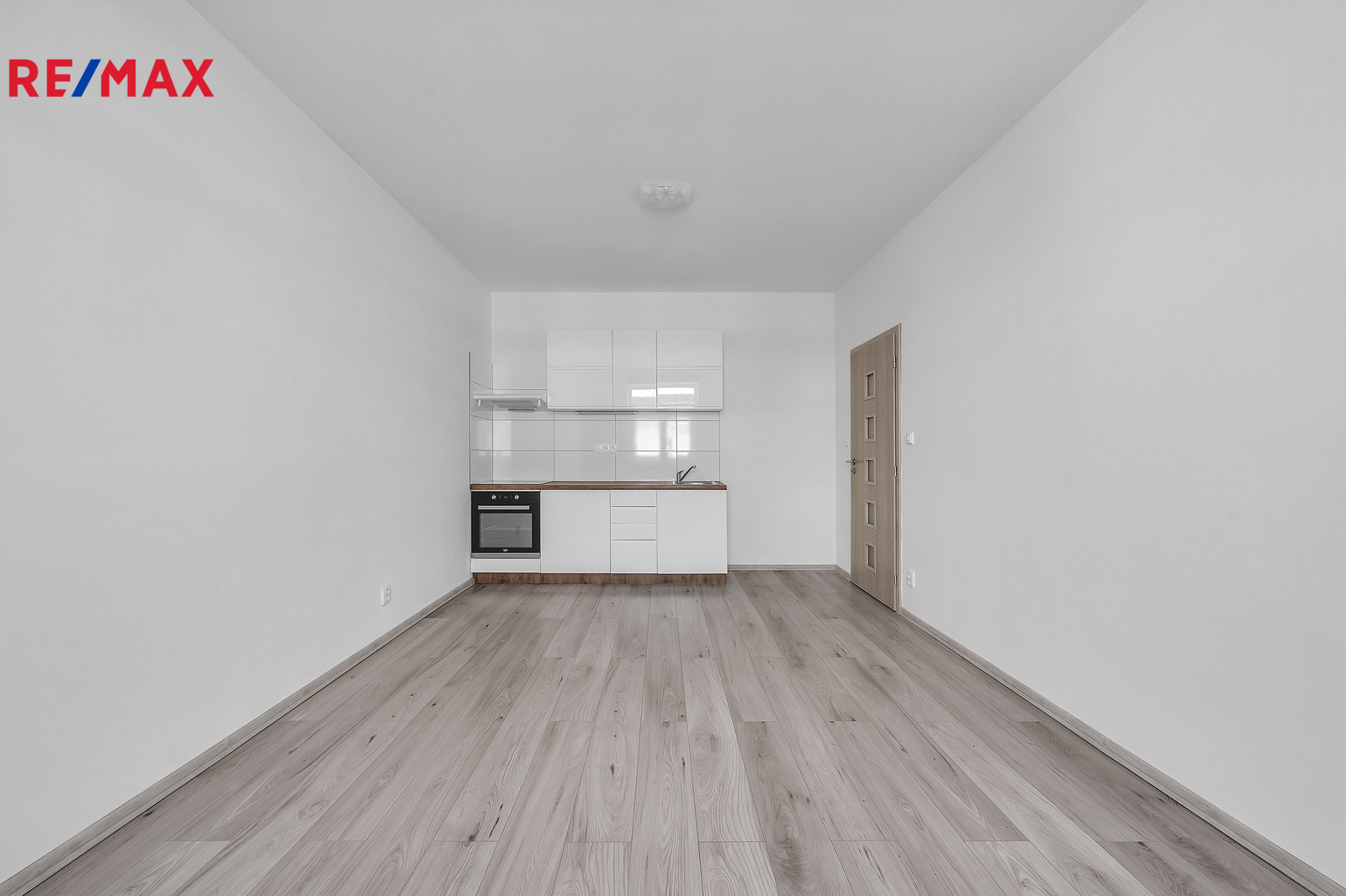 Interiér bytu je vybaven funkční kuchyňskou linkou, která obsahuje dřez, troubu, sklokeramickou desku a digestoř. Dále je zde prostor pro lednici, což zajišťuje dostatek místa pro pohodlné vaření a každodenní využití kuchyně. Z chodby je vstup do koupelny, kde je sprchový kout, toaleta, umyvadlo se zrcadlem a odpadem na pračku. Byt je ideální pro jednotlivce nebo pár, kteří preferují jednoduché, ale komfortní bydlení.