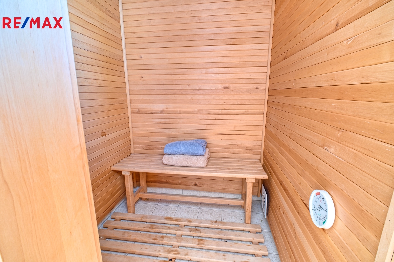V prvním patře najdete tři samostatné pokoje, koupelnu se saunou a dostatek úložných prostor.