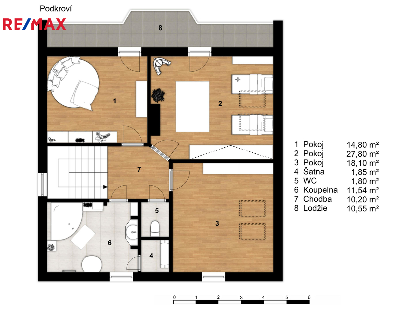 • dispozice: 5+kk + 2 místnosti v podkroví