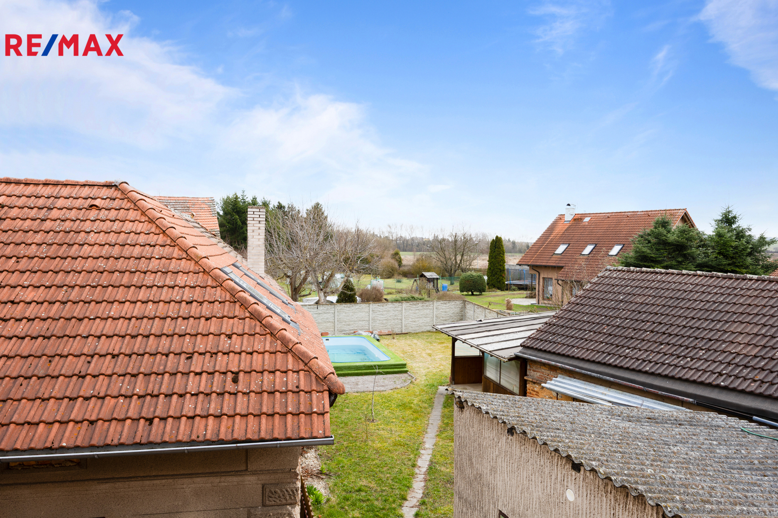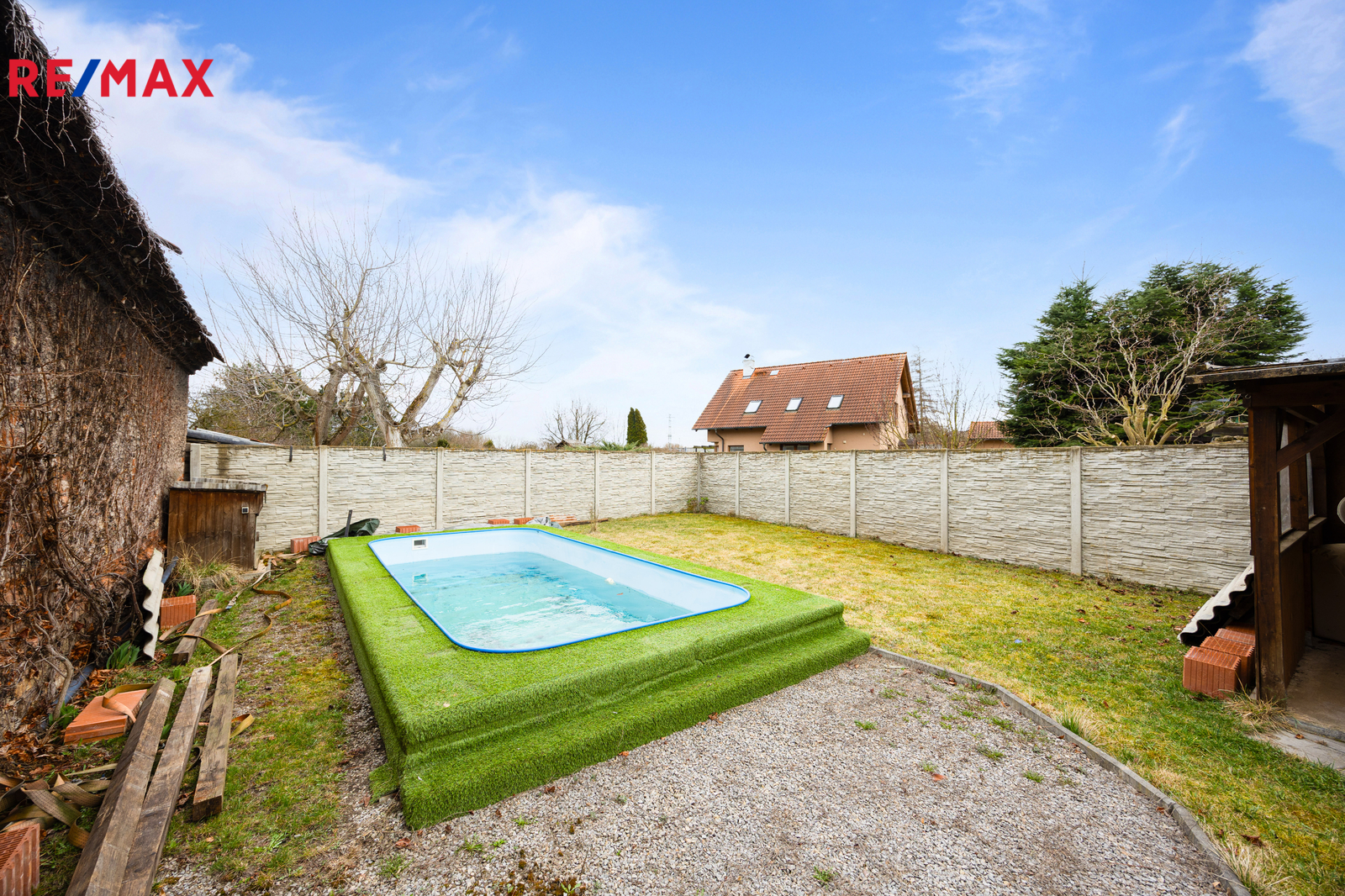 Na pozemku se nachází zapuštěný bazén. Vjezd na pozemek je přes vrata na dálkové ovládání. Na pozemku je možné parkování pro 2 až 3 auta. Součástí je garáž pro minimálně jedno auto.