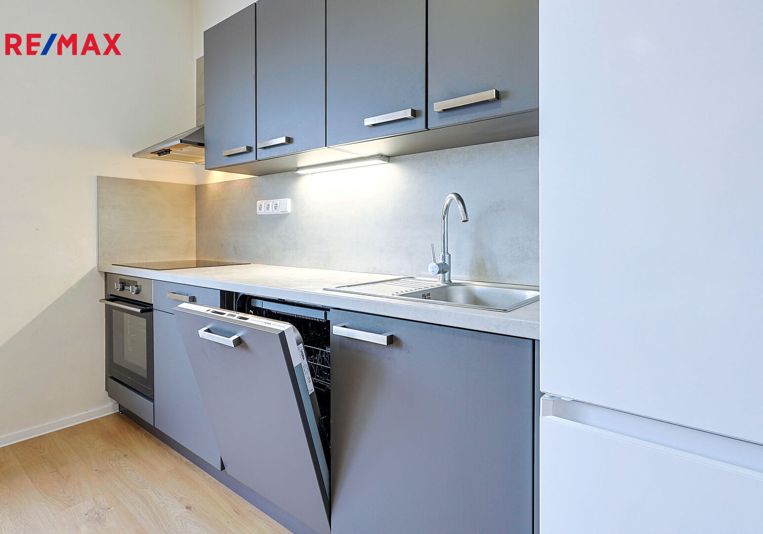 Vybavení kuchyně: lednice s mrazákem, myčka, sklokeramická deska, el. trouba, filtrová digestoř.