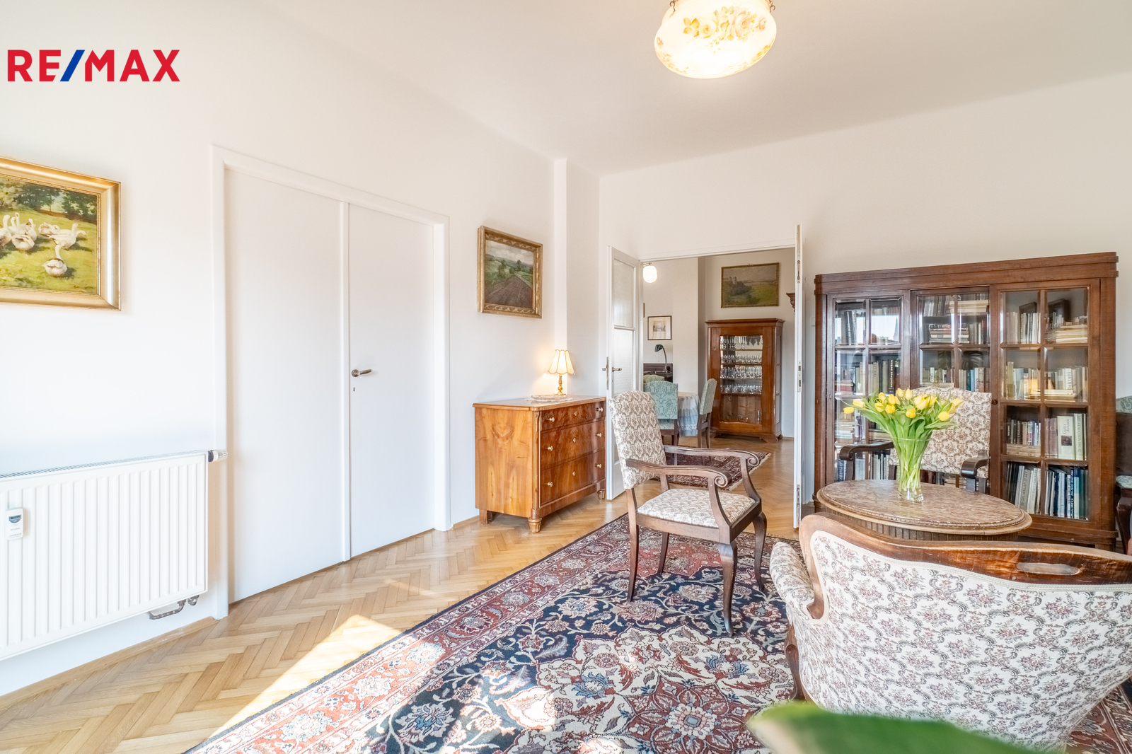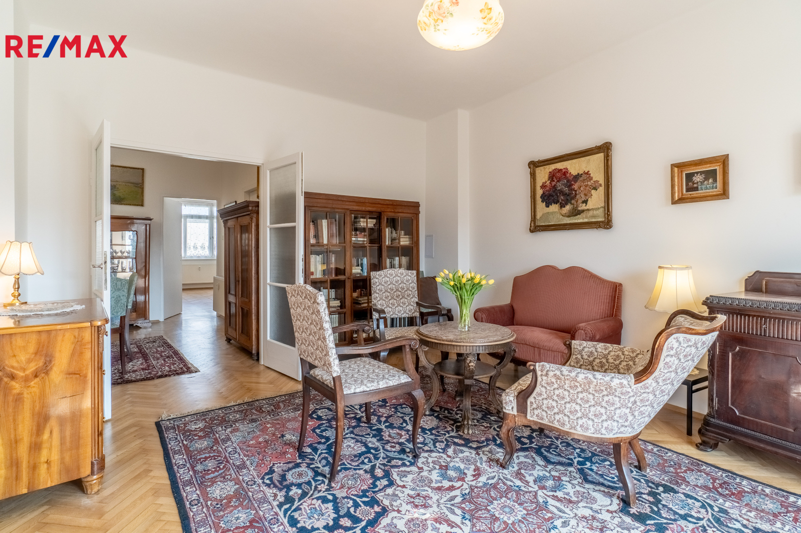 • Originální parkety doplněné ručně tkanými koberci