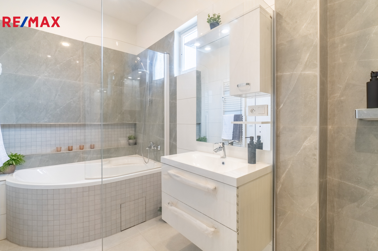 • Hlavní koupelna s vanou a prostorným sprchovým koutem