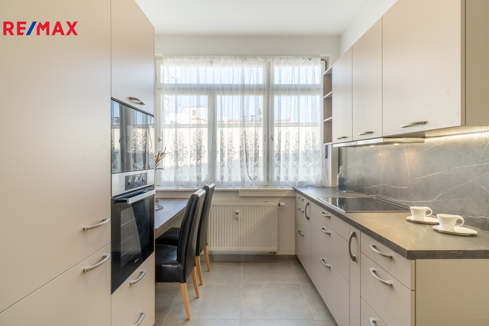 • Kuchyň s jídelním stolem pro dvě osoby, kompletně vybavená vestavěnými spotřebiči Miele (lednice, myčka, trouba, indukční sklokeramická deska, mikrovlnka, kávovar)