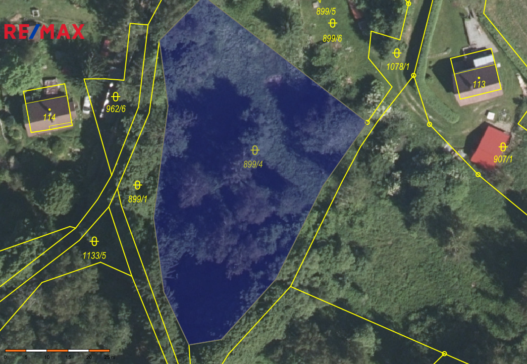 Součástí pozemku je také el. kaplička a dále vrt, což může být významnou výhodou pro budoucí využití pozemku.