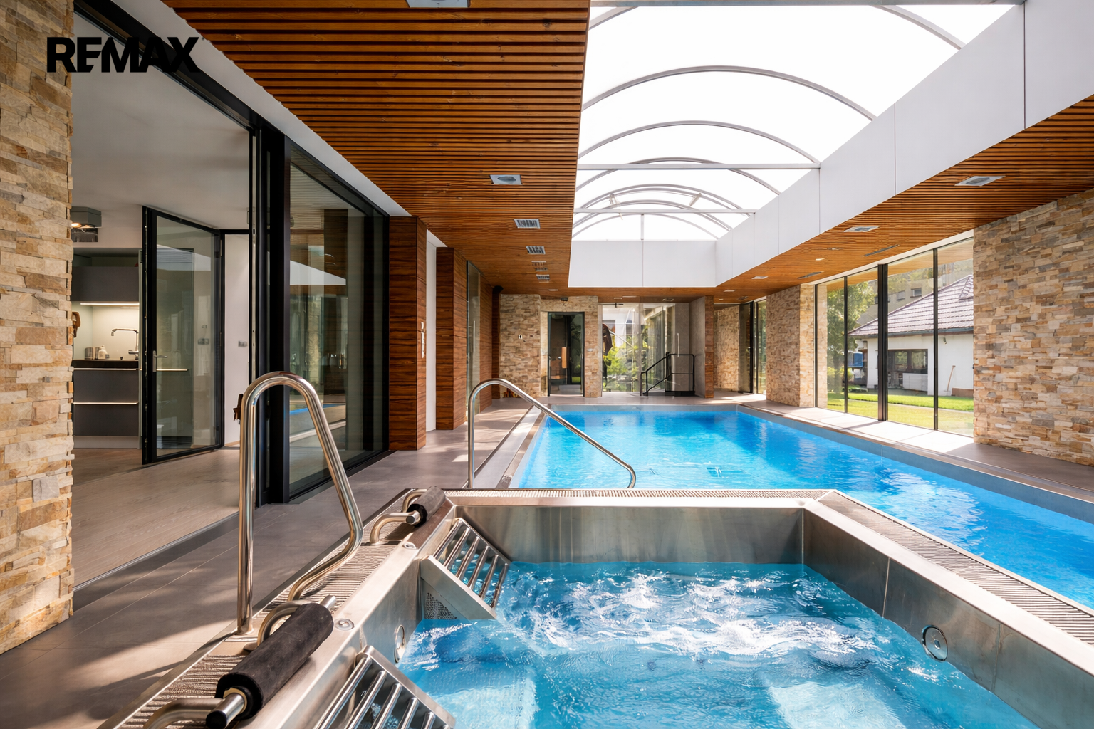 Výjimečná historická vila z roku 1911 (autorem návrhu je architekt Bedřich Karlseder, jeden z nejvýznamnějších představitelů secesní architektury), která prošla kompletní rekonstrukcí v roce 2010, citlivě propojená s moderní přístavbou wellness z roku 2013, představuje harmonické spojení architektonického dědictví, nadčasového designu a nejvyššího komfortu současného bydlení. Již při příchodu zaujme velkoryse prosklený vstupní prostor, který přirozeně propojuje interiér se zahradou, zaplavuje dům denním světlem a vytváří reprezentativní první dojem s atmosférou klidu a elegance. Tato rezidenční nemovitost splňuje nejvyšší nároky na současné bydlení a díky použitým technologiím dosahuje mimořádně úsporná (PENB A). Reprezentativní rezidence nabízí osm prostorných pokojů, čtyři koupelny a samostatné relaxační centrum s krytým bazénem, finskou saunou a vířivkou. Vila je situována uprostřed pečlivě udržované zahrady o rozloze přes 3 300 m² v klidné rezidenční čtvrti města Příbor, pouhé 4 km od Letiště Mošnov. Přízemí vily o ploše téměř 150 m² nabízí reprezentativní obývací pokoj, ložnici, kuchyni se spíží, koupelnu s vanou, sprchovým koutem a toaletou, samostatné WC a dvě vstupní haly. První patro disponuje pracovnou, dětským pokojem, dalším obývacím pokojem, kuchyní, komorou a koupelnou s vanou. Dům je částečně podsklepený; v suterénu se nachází technické zázemí s kotlem, centrálním vysavačem a prádelnou, dále pracovna se sprchovým koutem a šatna. Obytná část je prosklenou chodbou propojena s exkluzivním relaxačním centrem, které bylo realizováno v roce 2013 a nabízí krytý bazén, finskou saunu a vířivku s plně automatizovaným provozem. Součástí je také chodba s toaletou, šatnou a sprchovým koutem. Horní podlaží relaxační části tvoří dvě ložnice, koupelna a technická místnost. Centrum má samostatný vstup a navazuje na něj prostorná zastřešená terasa s grilem a venkovní kuchyní, ideální pro společenská setkání. K nemovitosti náleží dvě garáže s kapacitou pro tři vozy. Kuchyně jsou vybaveny prémiovými spotřebiči Siemens včetně indukční varné desky a vinotéky. Dům je zabezpečen kamerovým systémem, garážová vrata i hlavní brána jsou ovládány dálkově. Vytápění zajišťuje tepelné čerpadlo s možností vytápění plynem nezávisle v obou objektech (v každém i vlastní krb). Na střeše relaxační části je instalována fotovoltaická elektrárna o výkonu 20 kW s bateriovým úložištěm. Zahrada je vybavena automatickým zavlažovacím systémem a veškeré technologie domu – vytápění, voda, elektřina, bazén i zabezpečení – lze komfortně ovládat na dálku prostřednictvím mobilních aplikací. Nemovitost se nachází v klidné slepé ulici, v docházkové vzdálenosti od městského parku, historického centra, obchodů, škol, sportovišť i kulturních zařízení. Příbor, rodiště Sigmunda Freuda, nabízí plnohodnotnou občanskou vybavenost a příjemné prostředí pro rodinné bydlení. Krajské město Ostrava je dostupné přibližně za 20 minut po dálnici D48. Výborná dostupnost vlakem do Prahy - 3 hodiny.