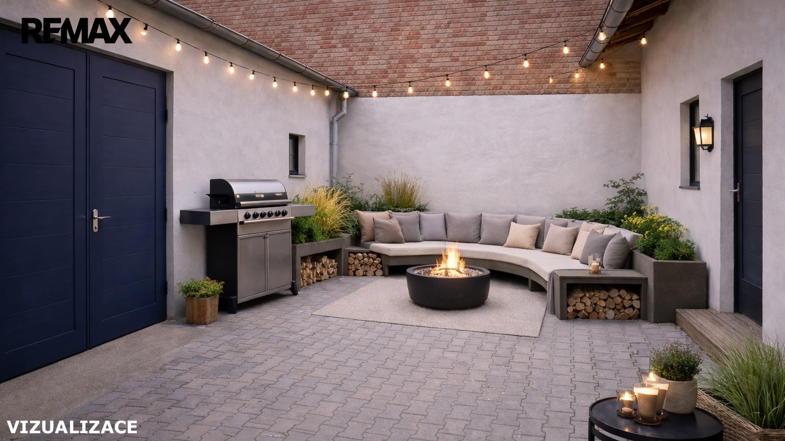 Součástí je také sklep o užitné ploše 16 m², dále průjezd do dvora o ploše 21 m² a dílna o velikosti 6 m².