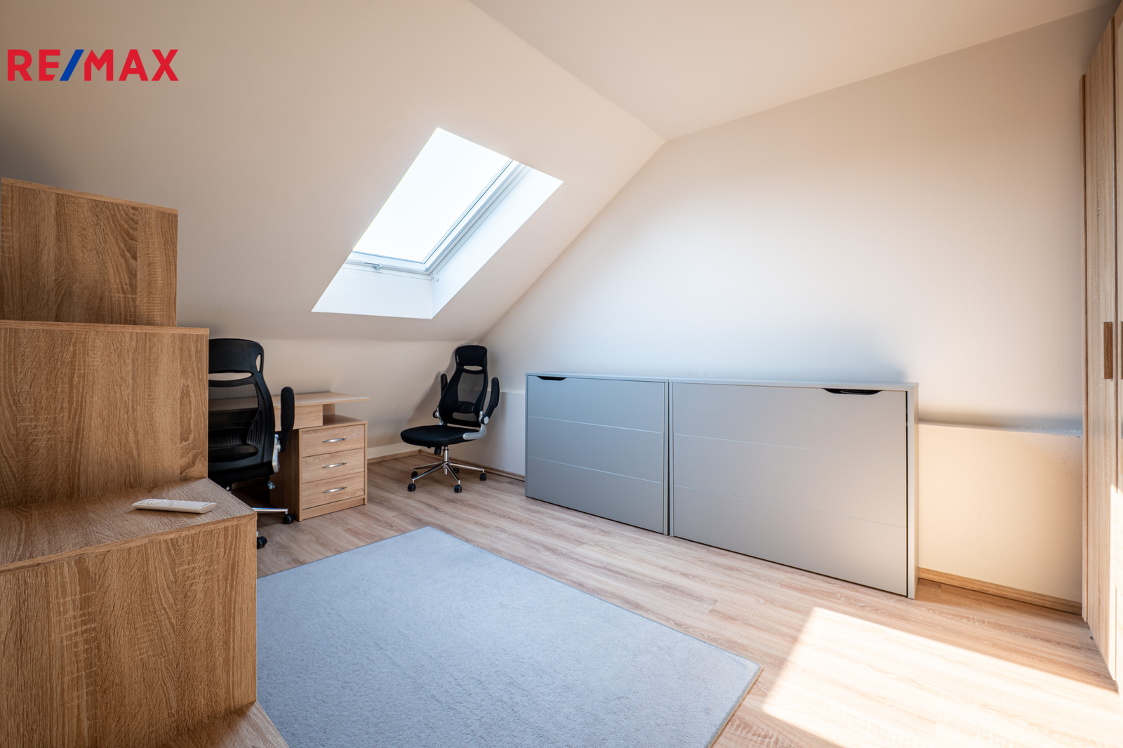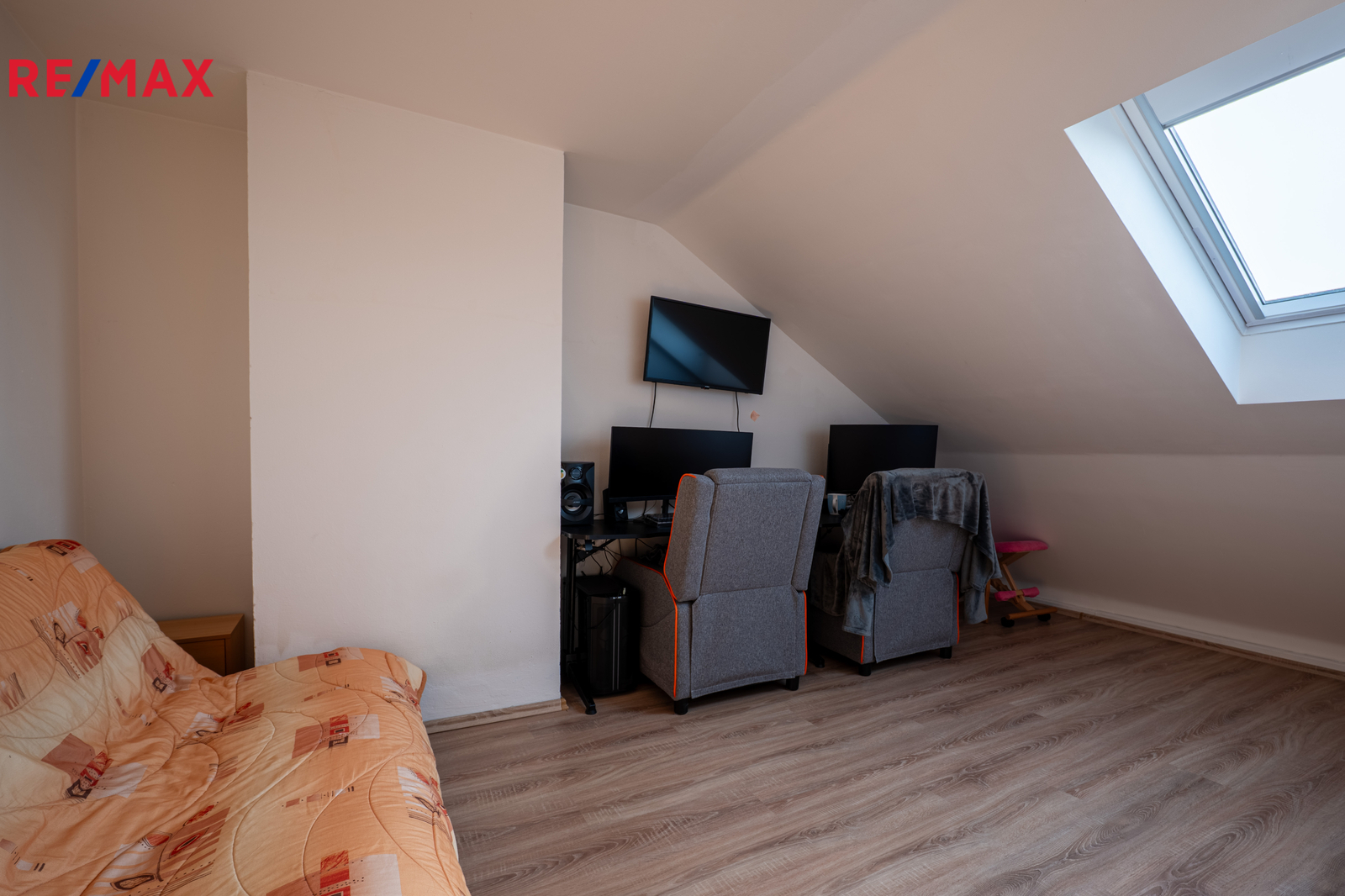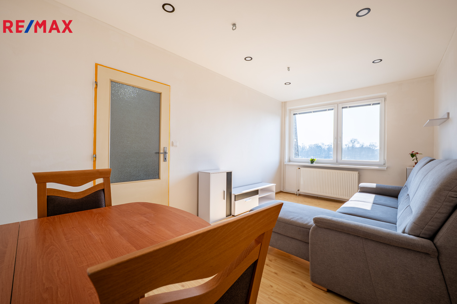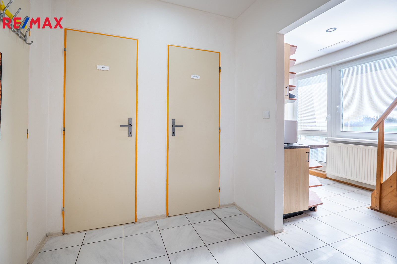 Dispozice bytu nabízí promyšlené řešení prostoru. Vstup vede do funkčně zrekonstruované předsíně, odkud jsou samostatné vstupy do koupelny s vanou a WC. Chodba slouží jako hlavní komunikační osa – propojuje kuchyň se vstupem na balkon i obývací pokoj a zároveň umožňuje výstup do horního patra. Mezonetové uspořádání přirozeně odděluje denní a klidovou zónu, takže byt vyváženě kombinuje společné chvíle i dostatek soukromí. Tento typ bydlení navíc přináší i pocit bydlení v domě. Velkým bonusem je přípojka optického internetu. V bytě jsou instalována trojskla v oknech.