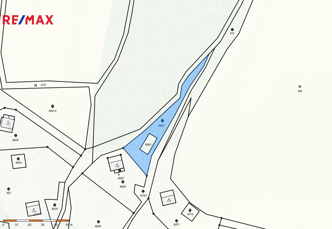 Součástí pozemku je také el. kaplička což může být významnou výhodou pro budoucí využití pozemku.