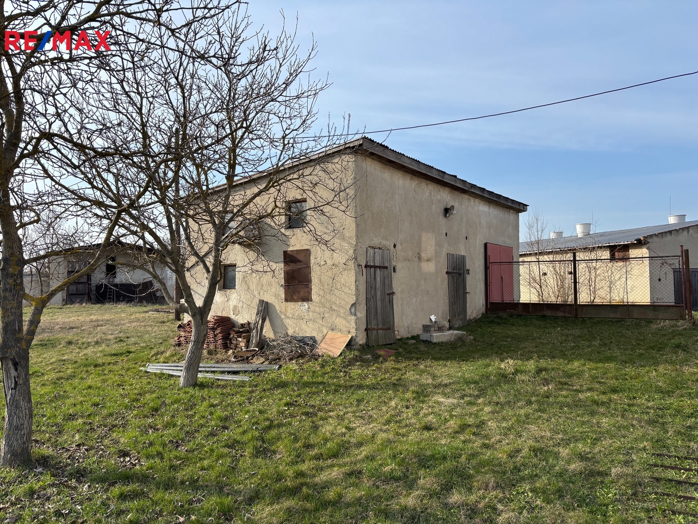 Dům je součástí pozemku o výměře 79 m² (zastavěná plocha a nádvoří) a nabízí kromě obytné části také garáž, hospodářské stavení a půdní prostor vhodný k vybudování dalšího pokoje. Dům je polovina dvojdomku.
