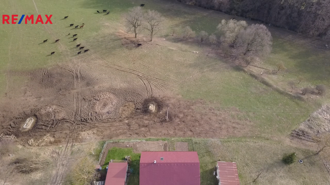 Střecha domu je nová, elektřina je zavedena třífázová, voda je dovedena ze studny, vytápění je třeba dořešit.