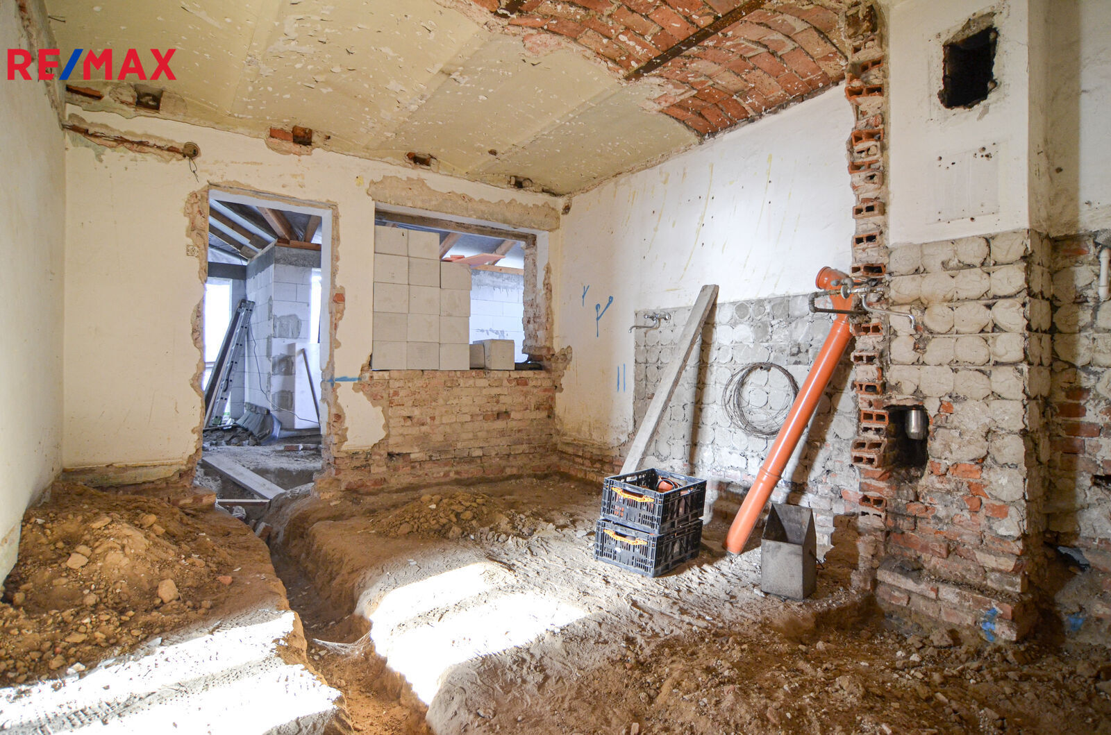 Dispozice:V přízemí domu se nachází průjezd, 3 pokoje, dále do dvora navazuje prostorná kuchyň s obývacím pokojem, koupelna, toaleta, technická místnost, dům je částečně podsklepen.Za domem je prostorná zahrada o výměře 462 m2. Dům je ideální pro čtyřčlennou rodinu.