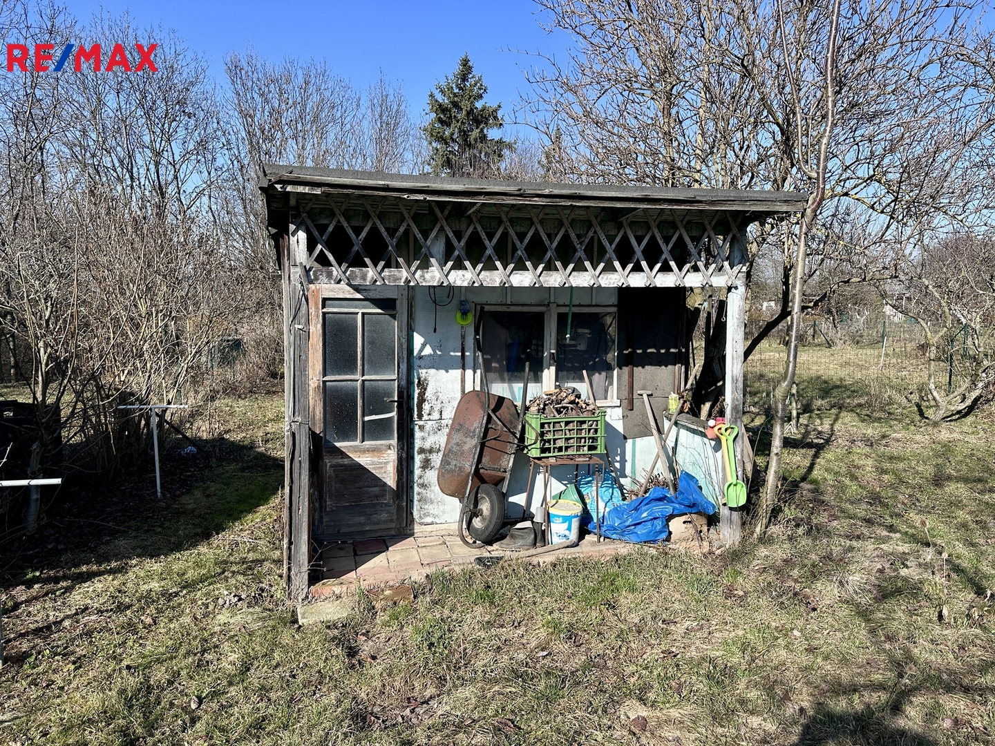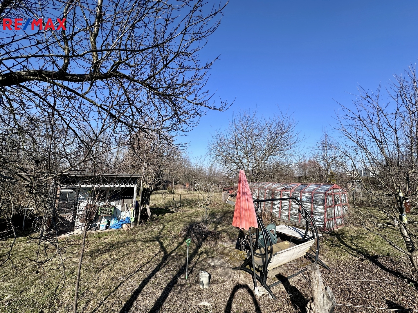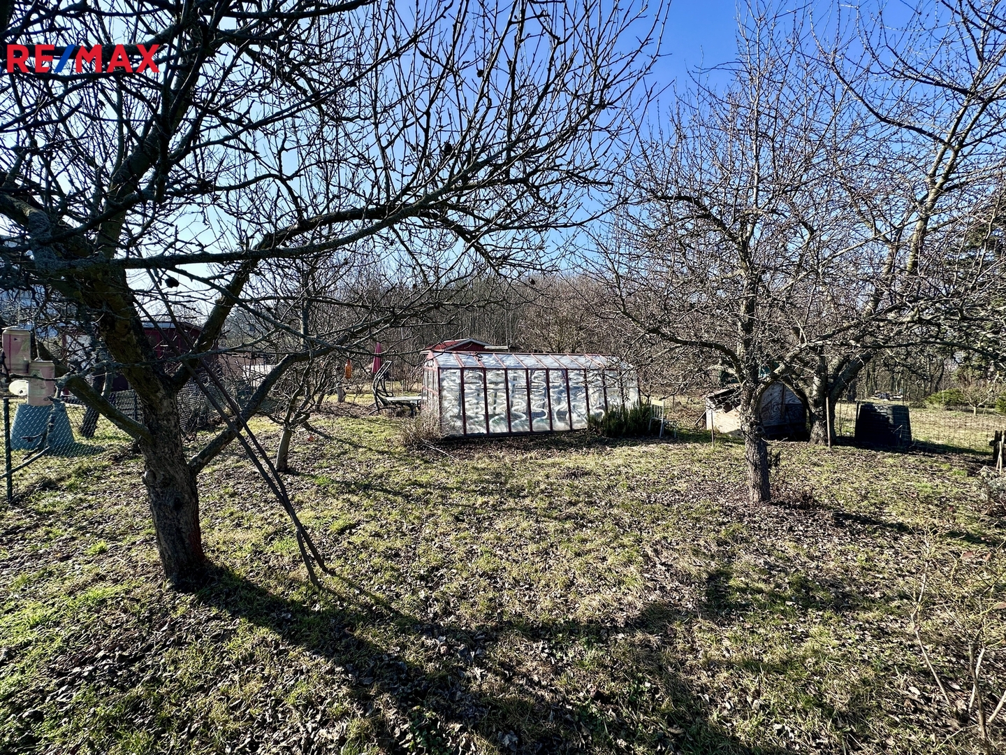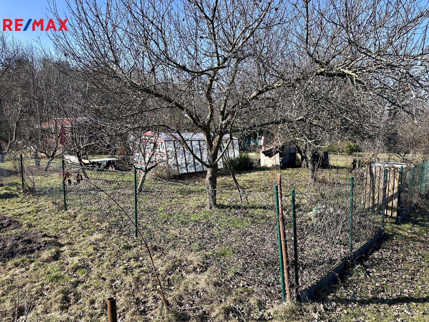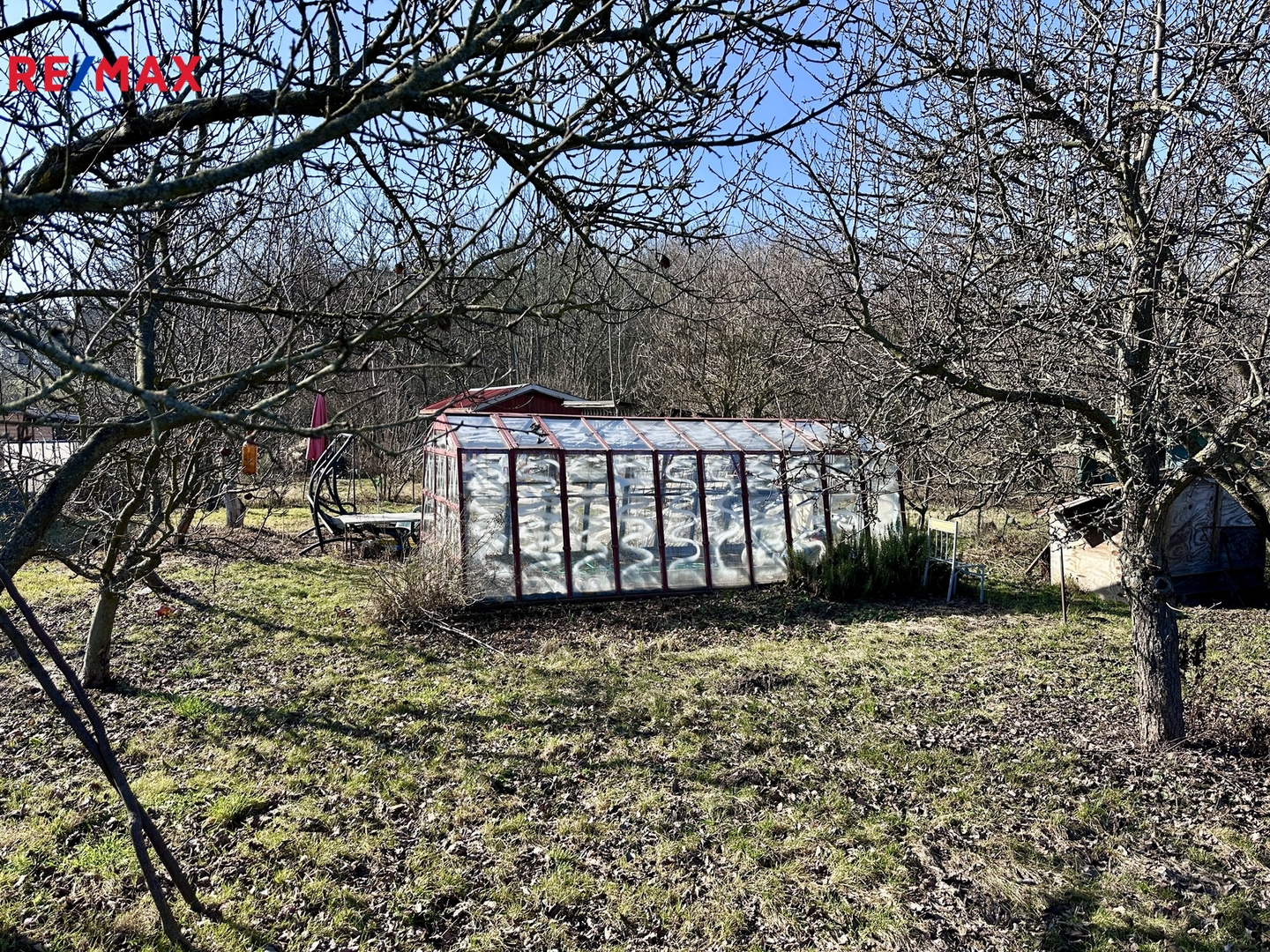 Na pozemku je skleník a domek na nářadí.