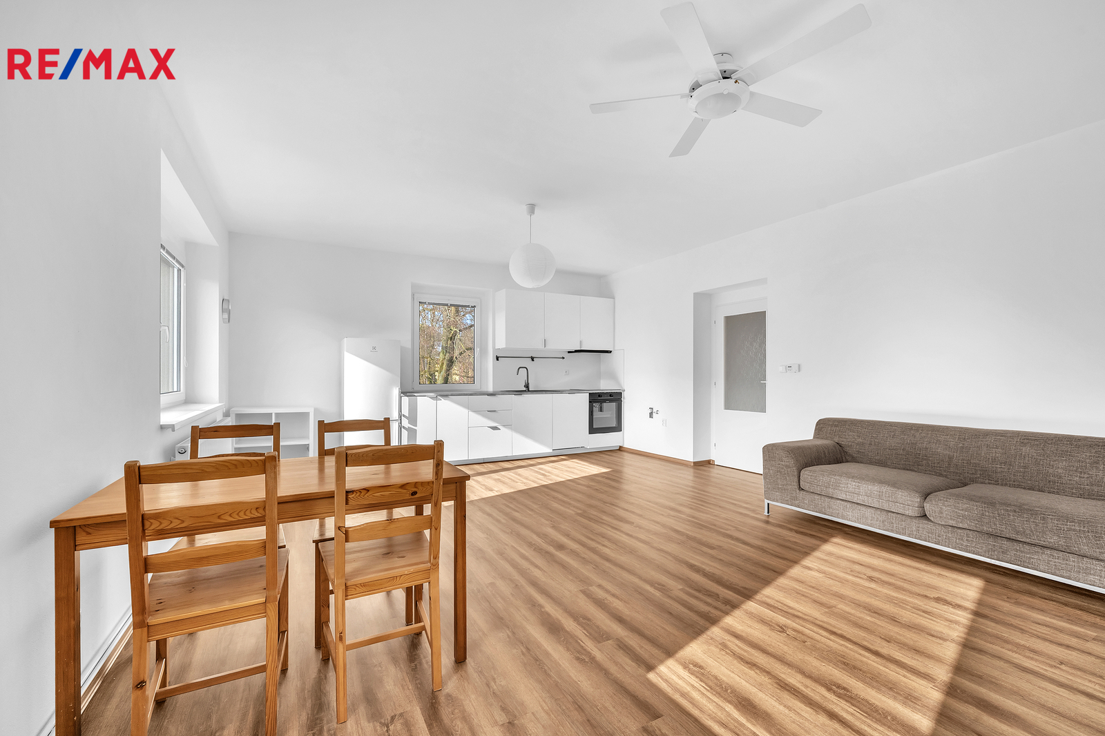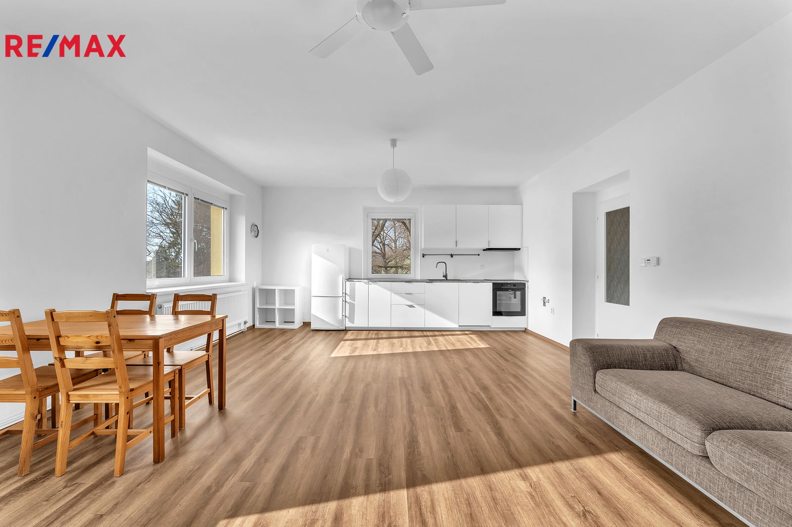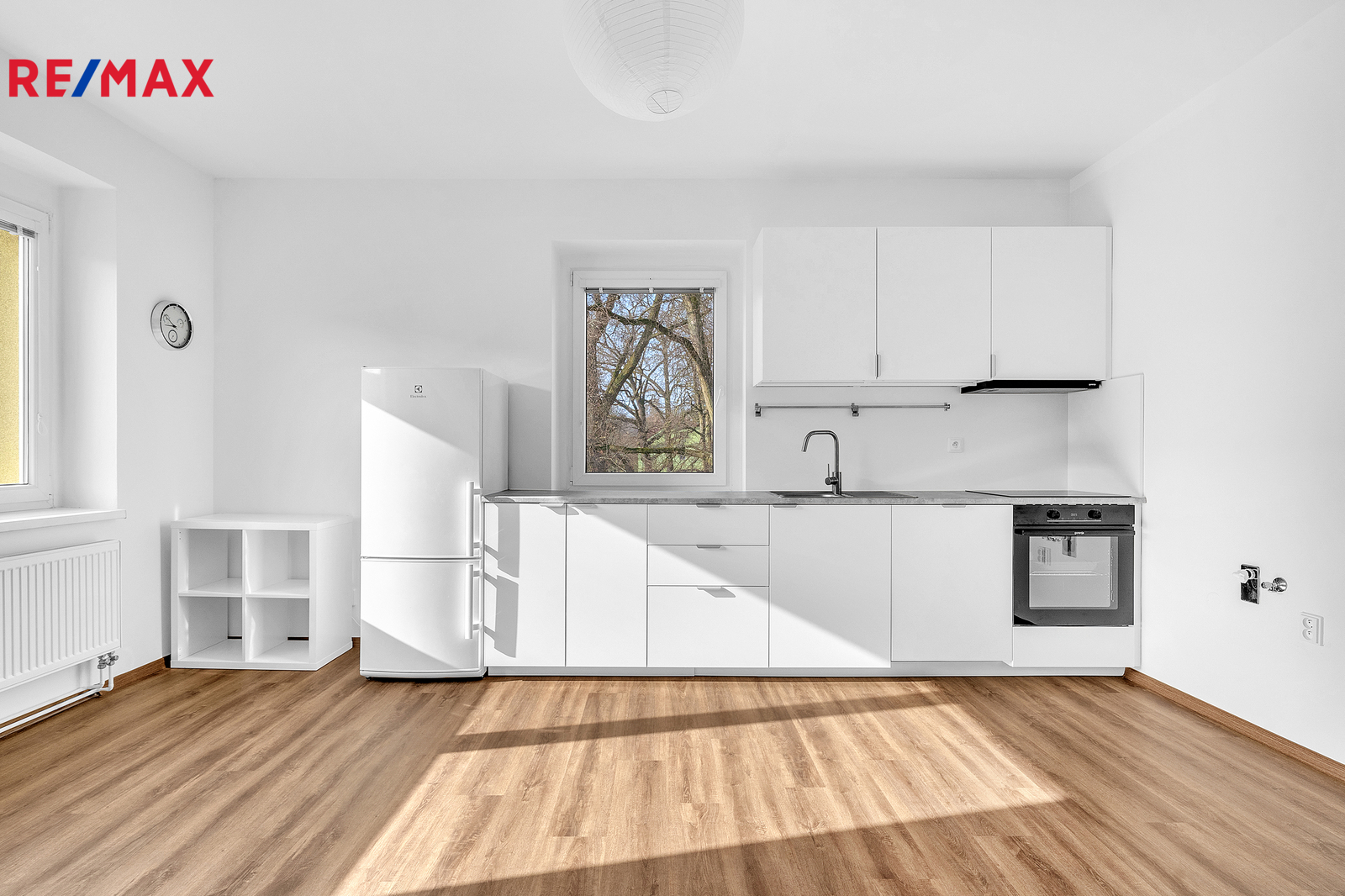 Byt působí svěže, čistě a velmi příjemně. Je nově vymalovaný, má kompletně nové vinylové podlahy, novou kuchyňskou linku včetně spotřebičů a v koupelně nové baterie. Praktickým bonusem jsou sítě proti hmyzu ve všech oknech, žaluzie v obývacím pokoji a koupelně a příjemný výhled do zeleně, který dodává bydlení klidnou atmosféru.