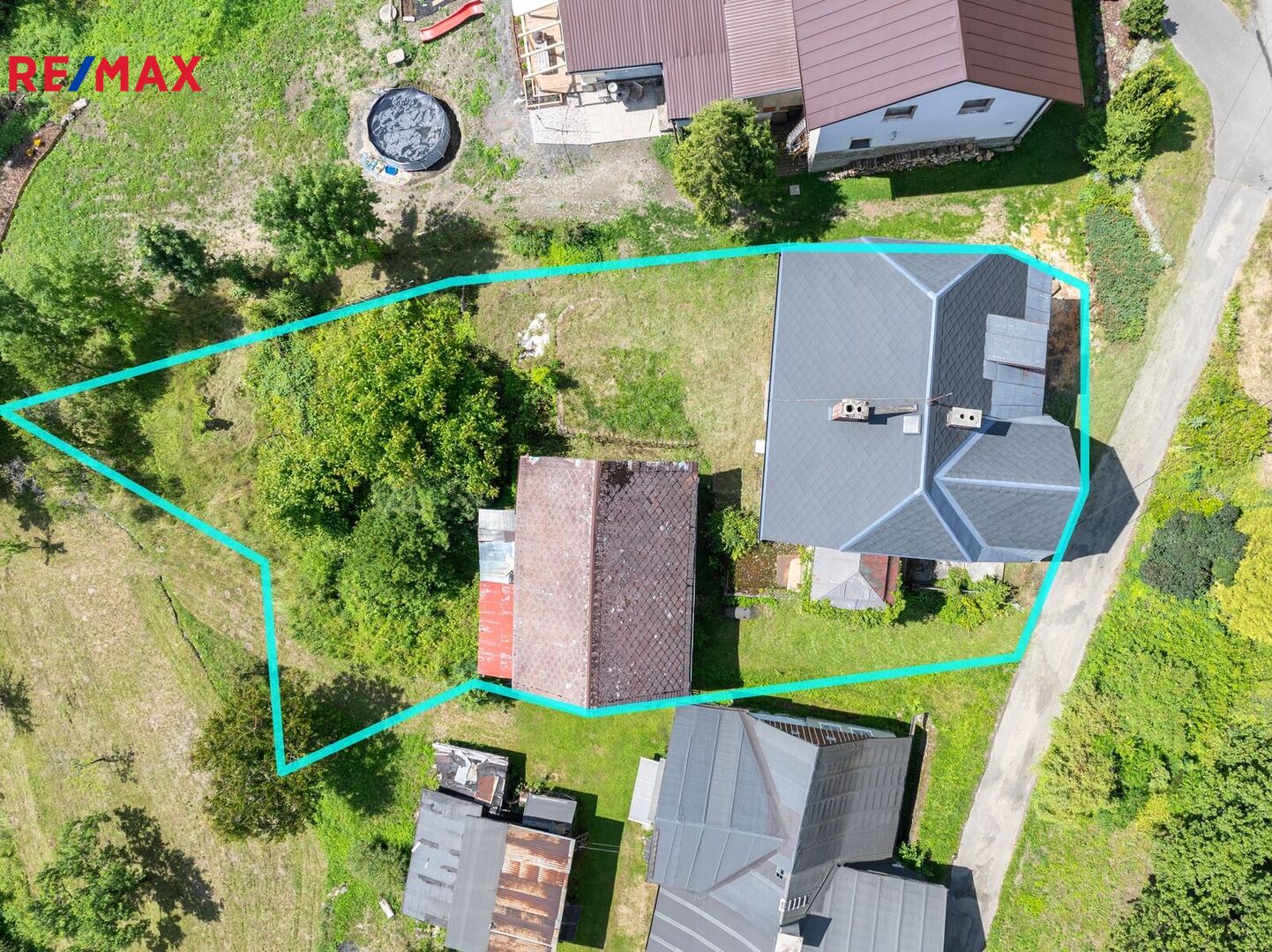 Součástí nemovitosti je pozemek o celkové výměře 723 m², který zahrnuje jak zastavěnou plochu a nádvoří, tak zahradu. Na pozemku se nachází taktéž stodola. V dolní části zahrady je ohniště a malý potůček, který místu dodává jedinečnou atmosféru. Parkování je možné přímo před domem, případně lze využít obecní parkoviště v bezprostřední blízkosti (na protější straně ulice).
