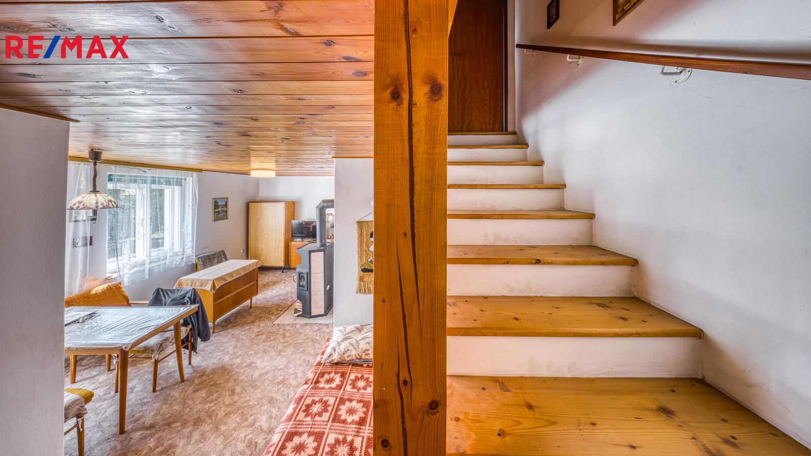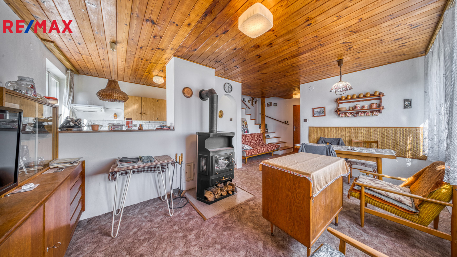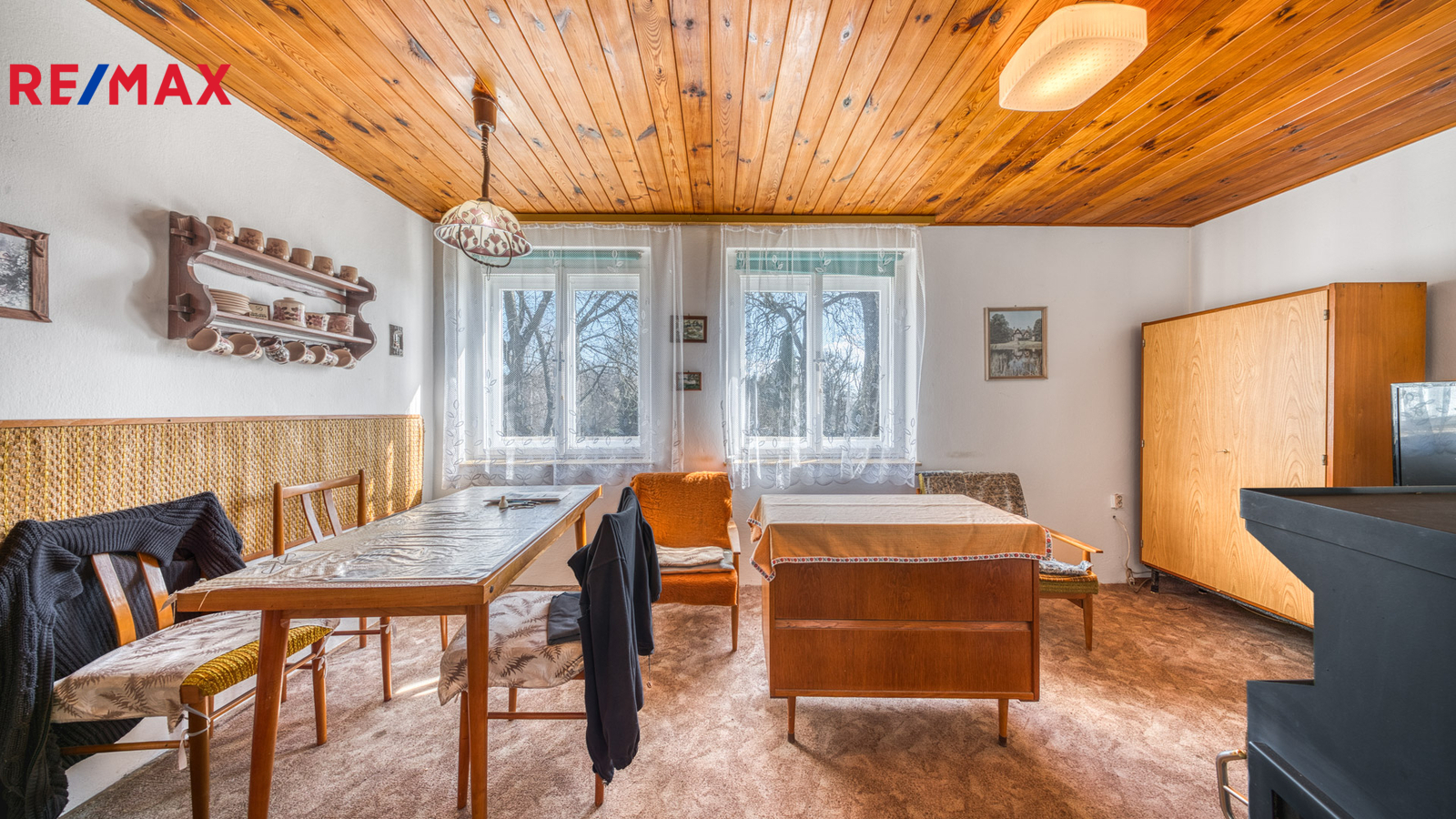 Interiér je převážně v původním, udržovaném stavu. Pro někoho představuje příležitost k modernizaci dle vlastního vkusu, pro jiného si zachovává autentický charakter klasické rekreační chaty, který nebude chtít měnit.