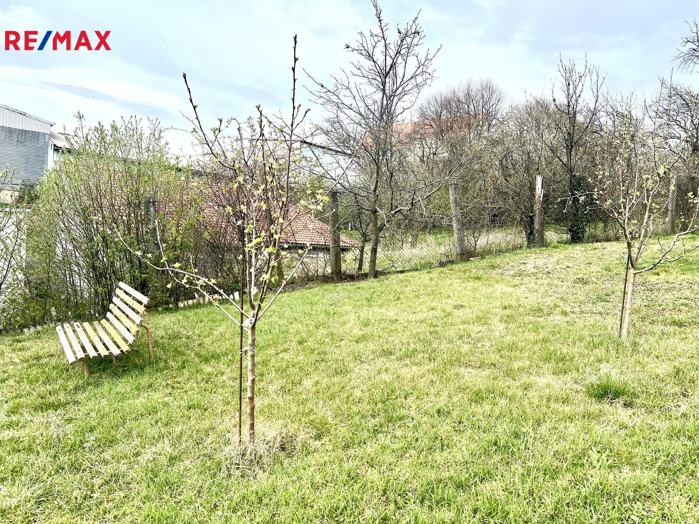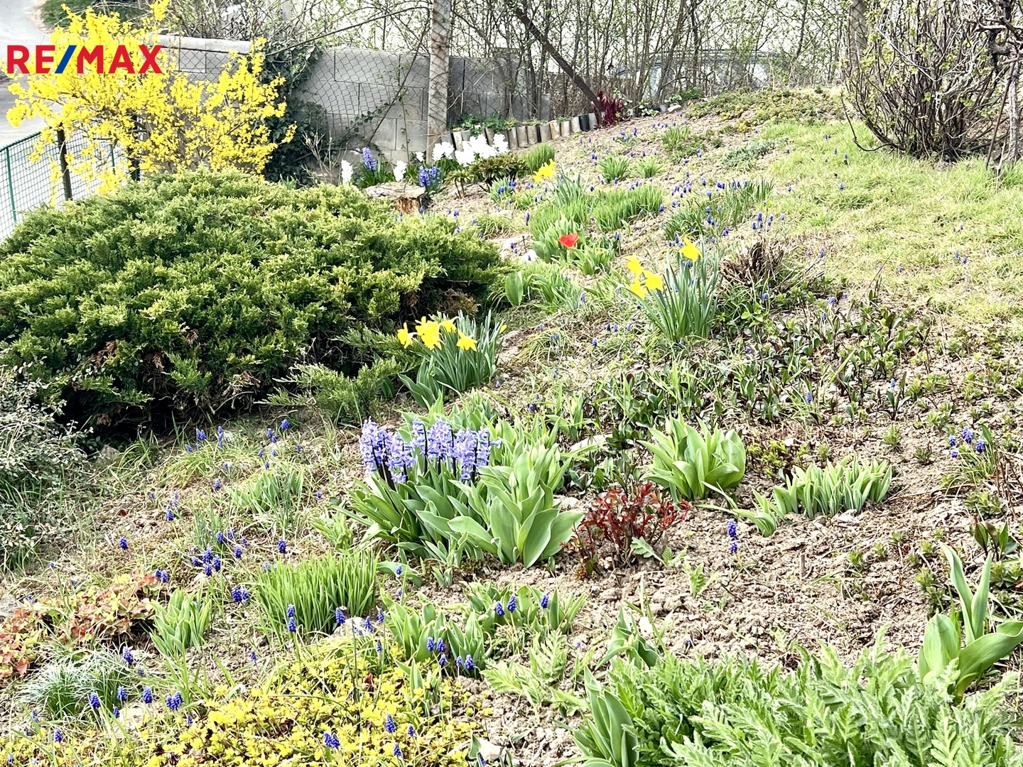 Zahrádka se skalkou o rozloze 312 m2 je mírně svažitá, jsou zde ovocné stromky a keře.