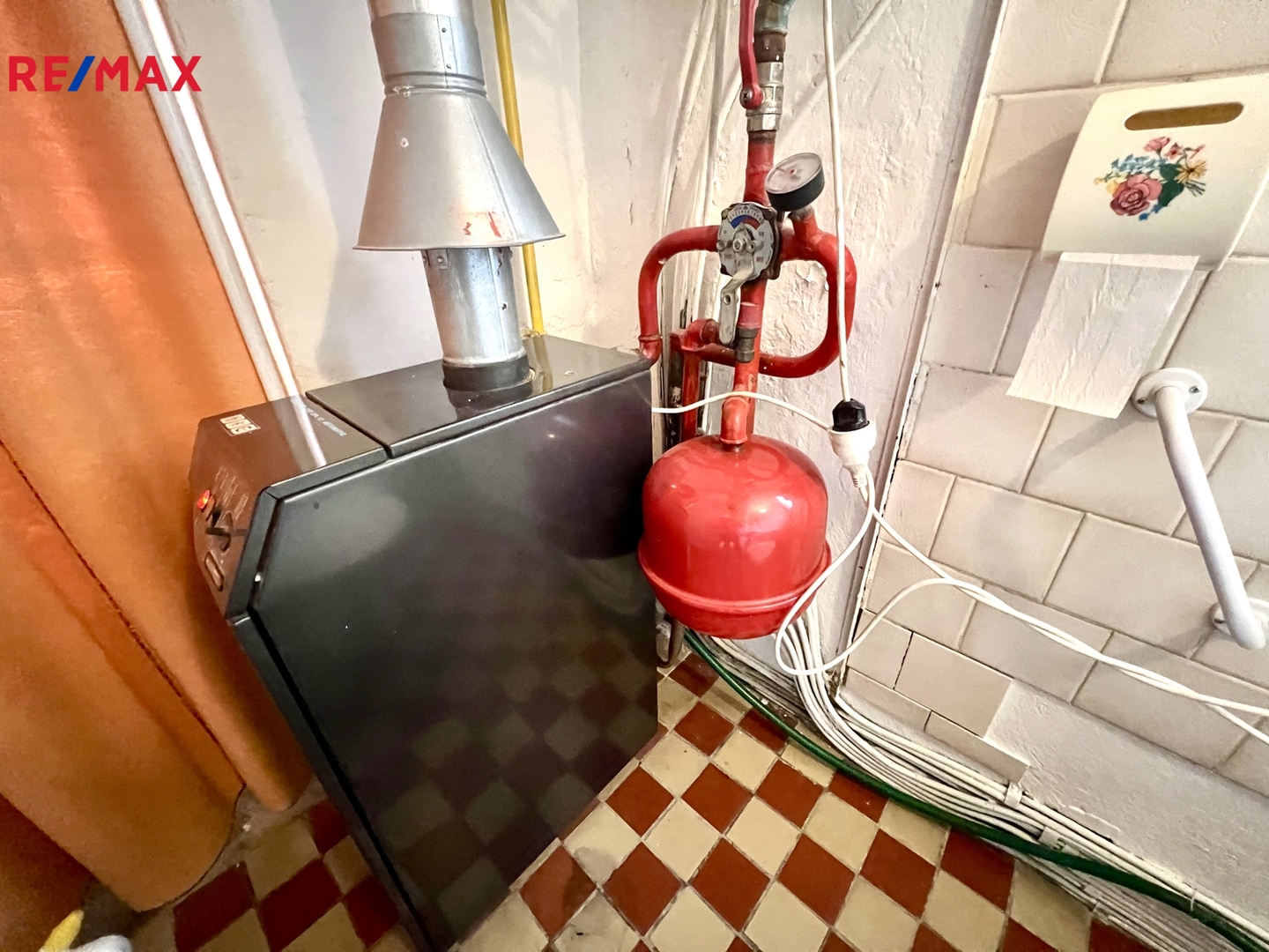 Vytápění domu je ústřední plynovým kotlem, voda je ohřívána v elektrickém bojleru.