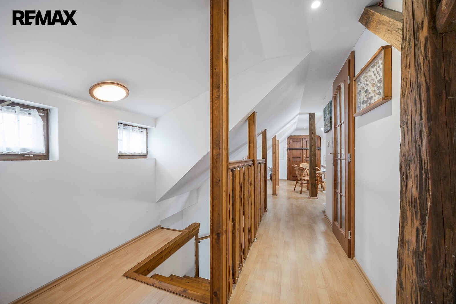 V podkroví se nacházejí další dva pokoje. Jeden z pokojů je vytápěn přímotopem, druhý je bez vlastního zdroje vytápění. Na chodbě v podkroví je navíc příjemné posezení, které vytváří další prostor pro relaxaci. Komfort užívání zvyšuje skutečnost, že jak v přízemí, tak i v podkroví je k dispozici koupelna se sprchovým koutem a toaletou.