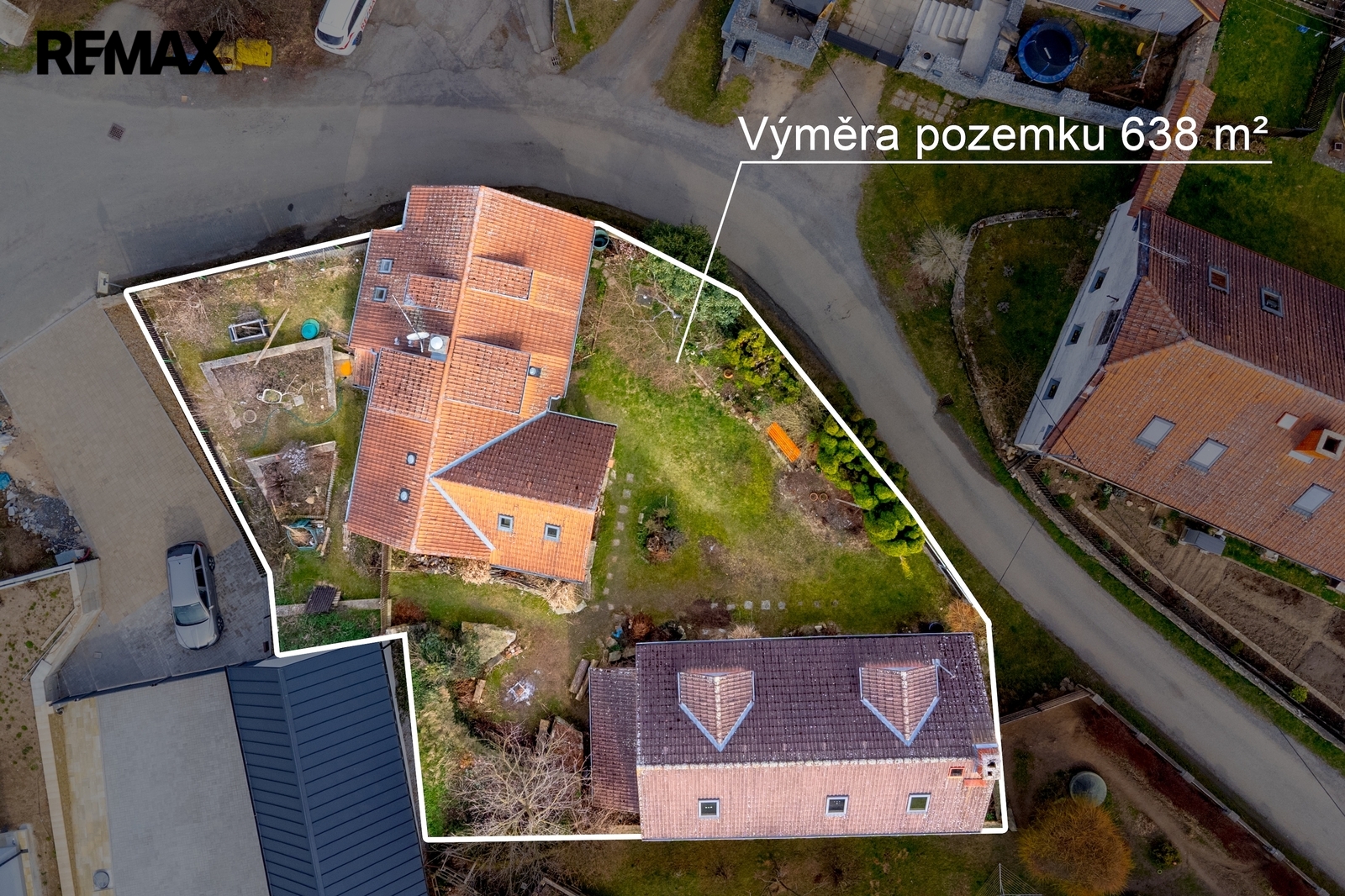 Celková výměra pozemku činí 638 m² a poskytuje dostatek prostoru pro odpočinek i zahradničení. Součástí pozemku je také hospodářská budova, bývalá kovárna, která dnes slouží jako sklad dřeva a nářadí, přičemž v horní části se nachází herna. Velkou výhodou této stavby je její další potenciál – může sloužit jako základ pro vybudování dalšího obytného prostoru, dílny, garáže nebo objektu se skladovacím zázemím.