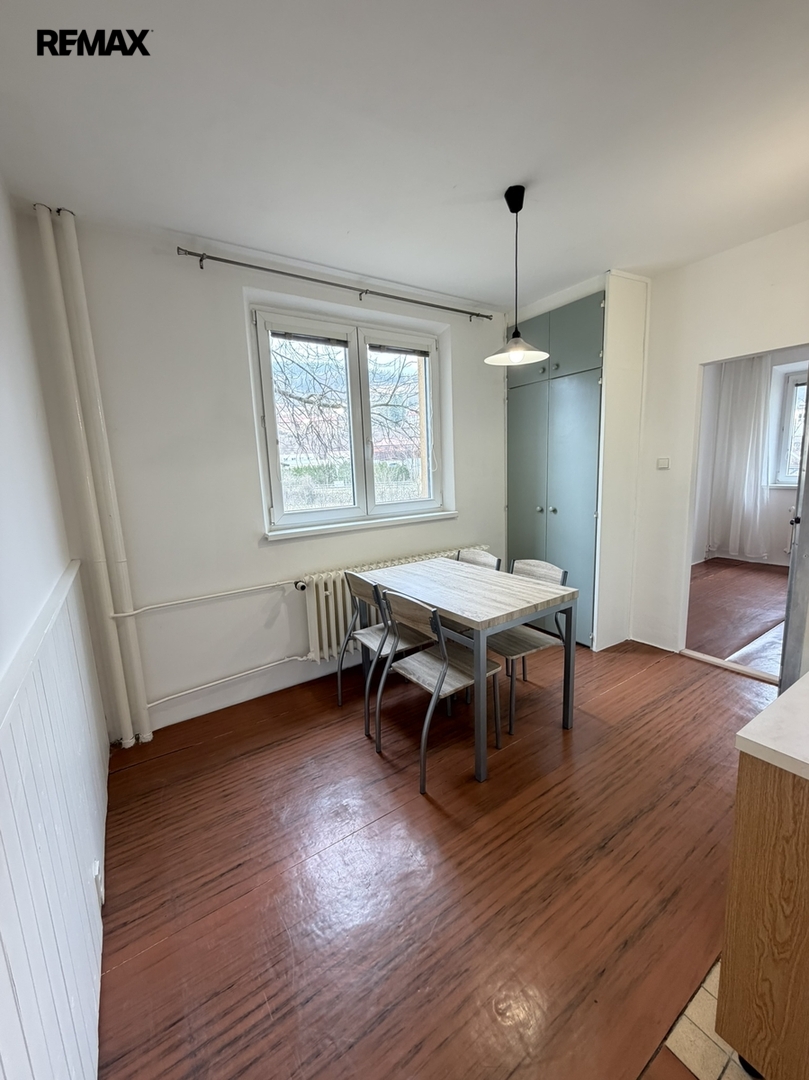 Byt se nachází v 1. nadzemním podlaží revitalizovaného panelového domu. Dispozičně nabízí dva samostatné, neprůchozí pokoje, kuchyni, koupelnu, samostatné WC a vstupní chodbu, kde je umístěna zabudovaná skříň.