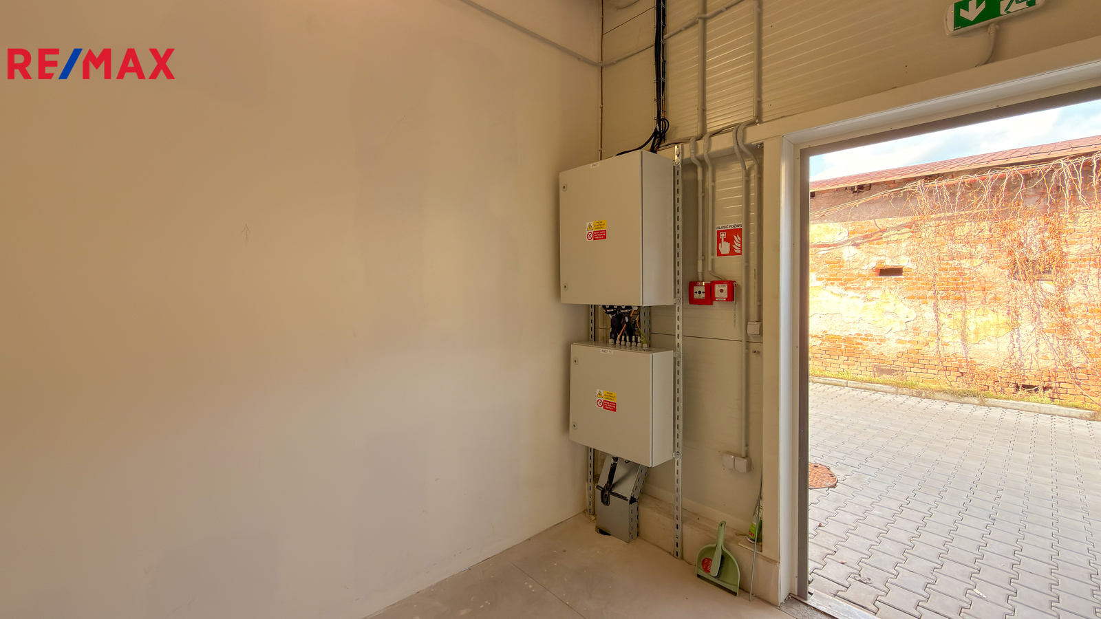 Prostor je situován v zadní části budovy a je přístupný přímo z parkoviště, což zajišťuje pohodlnou manipulaci se zbožím i bezproblémovou logistiku.