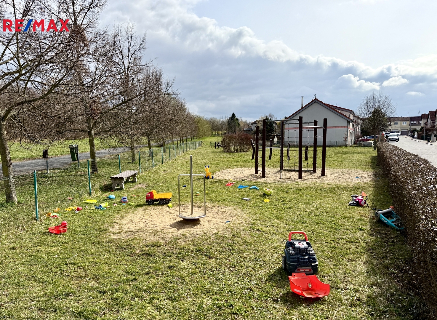 V prvním nadzemním podlaží je vstupní chodba, šatna, obývací pokoj spojený s kuchyní (celkem o výměře 39 m2), spíž a WC s umyvadlem. Z obývacího pokoje je vstup na terasu a krásnou zahrádku se vzrostlými okrasnými dřevinami a meruňkou. Do garáže, kde je prostor i na odkládání jízdních kol, je vstup i ze zahrady.