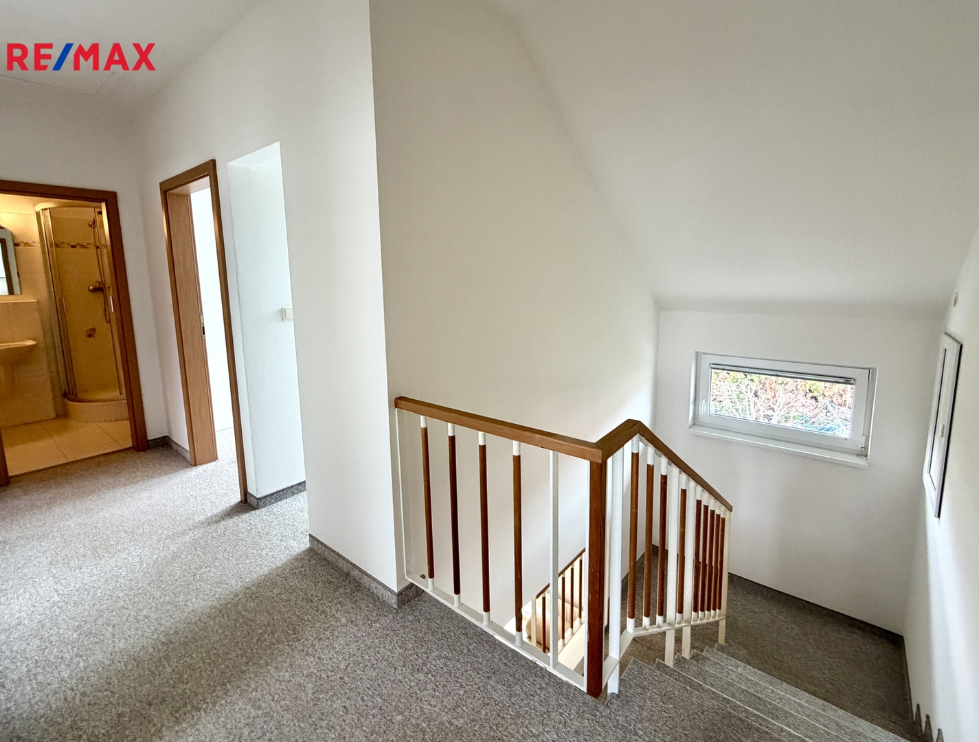 Zateplený cihlový dům je rozložen do dvou nadzemních podlaží a jeho celková užitná plocha je 138 m2 (včetně garáže se skladem 20 m2).