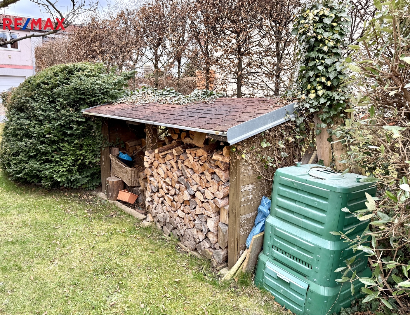 Dále je dům vybaven zabezpečovacím zařízením, na oknech jsou praktické venkovní rolety a žaluzie, v obývacím pokoji jsou krbová kamna. Na zahradě je umístěn zásobník na dřevo a kompostér.