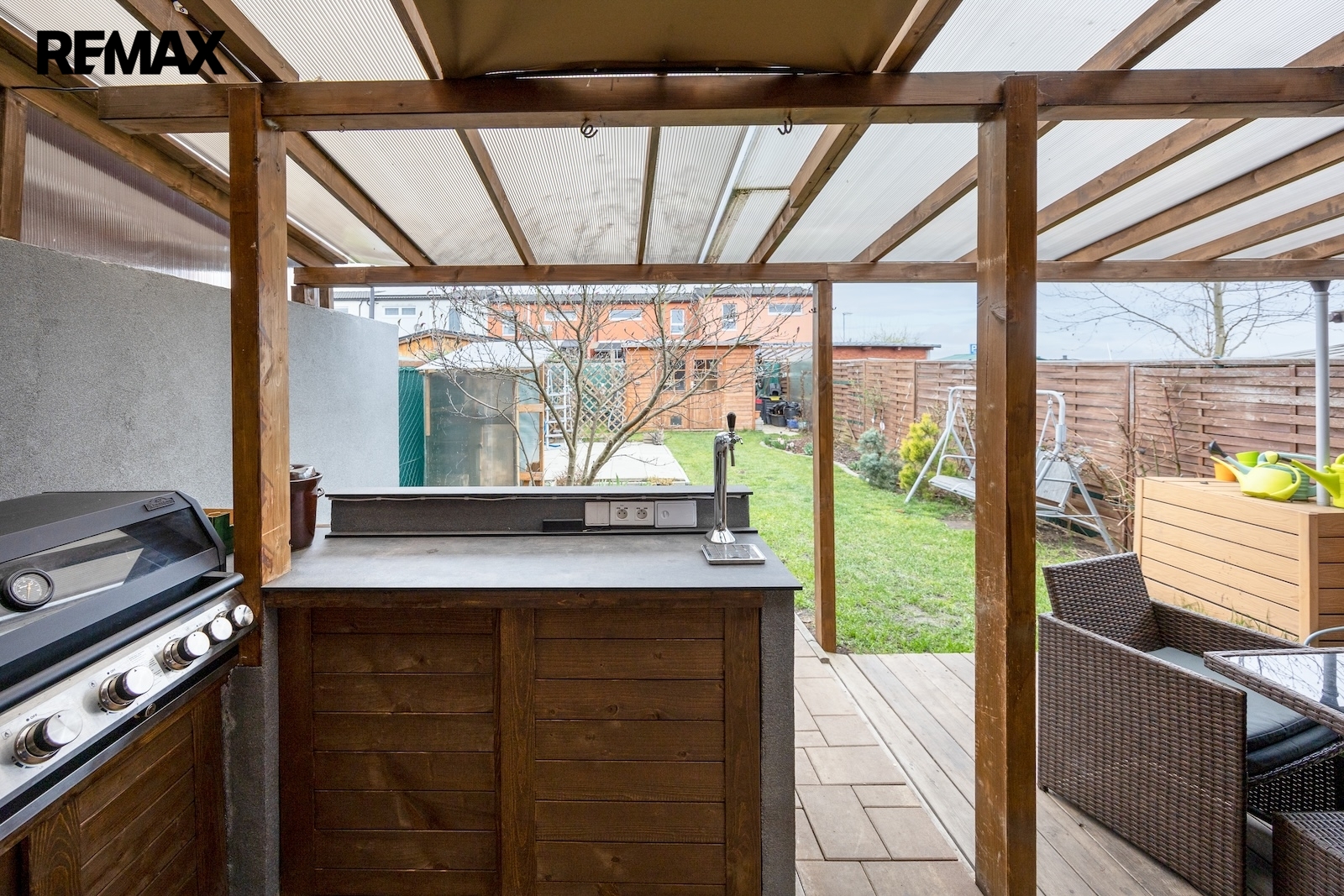Dům je ve velmi dobrém stavu a nabízí promyšlené využití prostoru. Zahrada je ideálním místem pro relaxaci, bazén či vířivku.