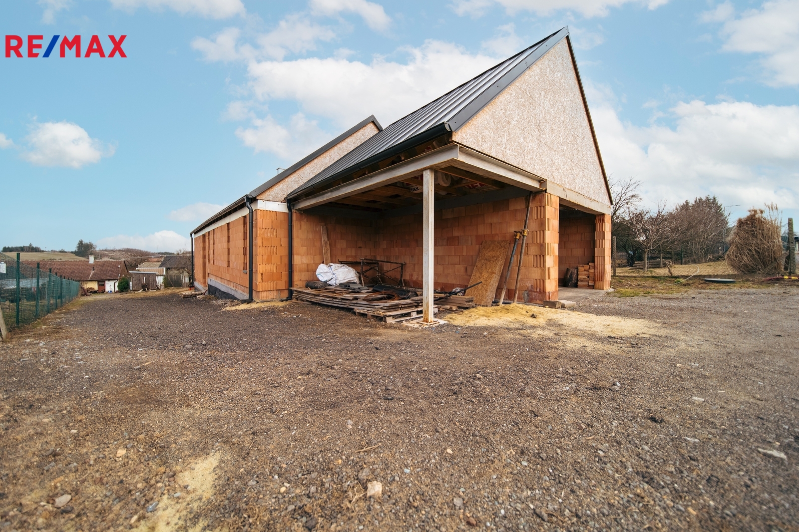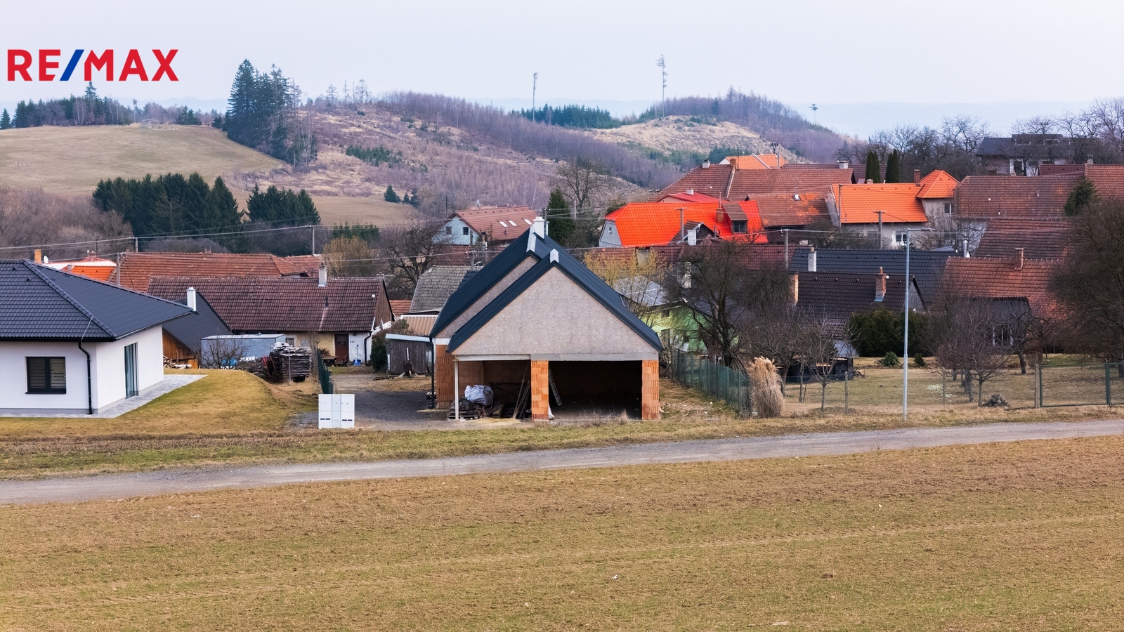 V obci Bedřichov nabízíme k prodeji rozestavěný samostatně stojící rodinný dům o dispozici 4+kk na pozemku o výměře cca 780 m². Dům je navržen jako přízemní se sedlovou střechou, garáží a krytým parkovacím stáním.