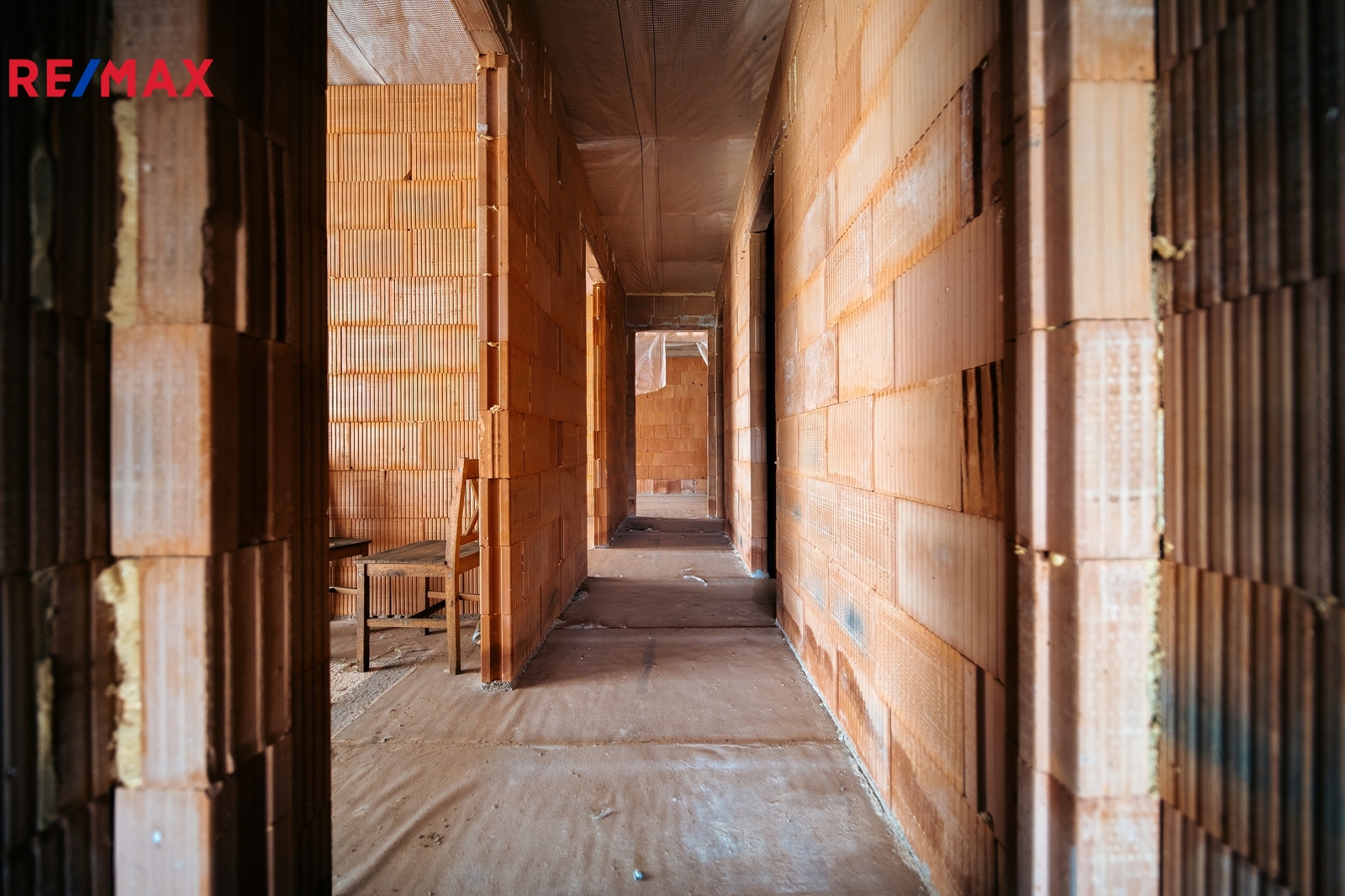 Dům je realizován podle schváleného projektu a stavebního povolení. Výhodou je aktuální fáze výstavby, kdy si můžete doladit finální podobu interiéru – například podlahy, dveře, koupelnu nebo kuchyni podle vlastního vkusu.