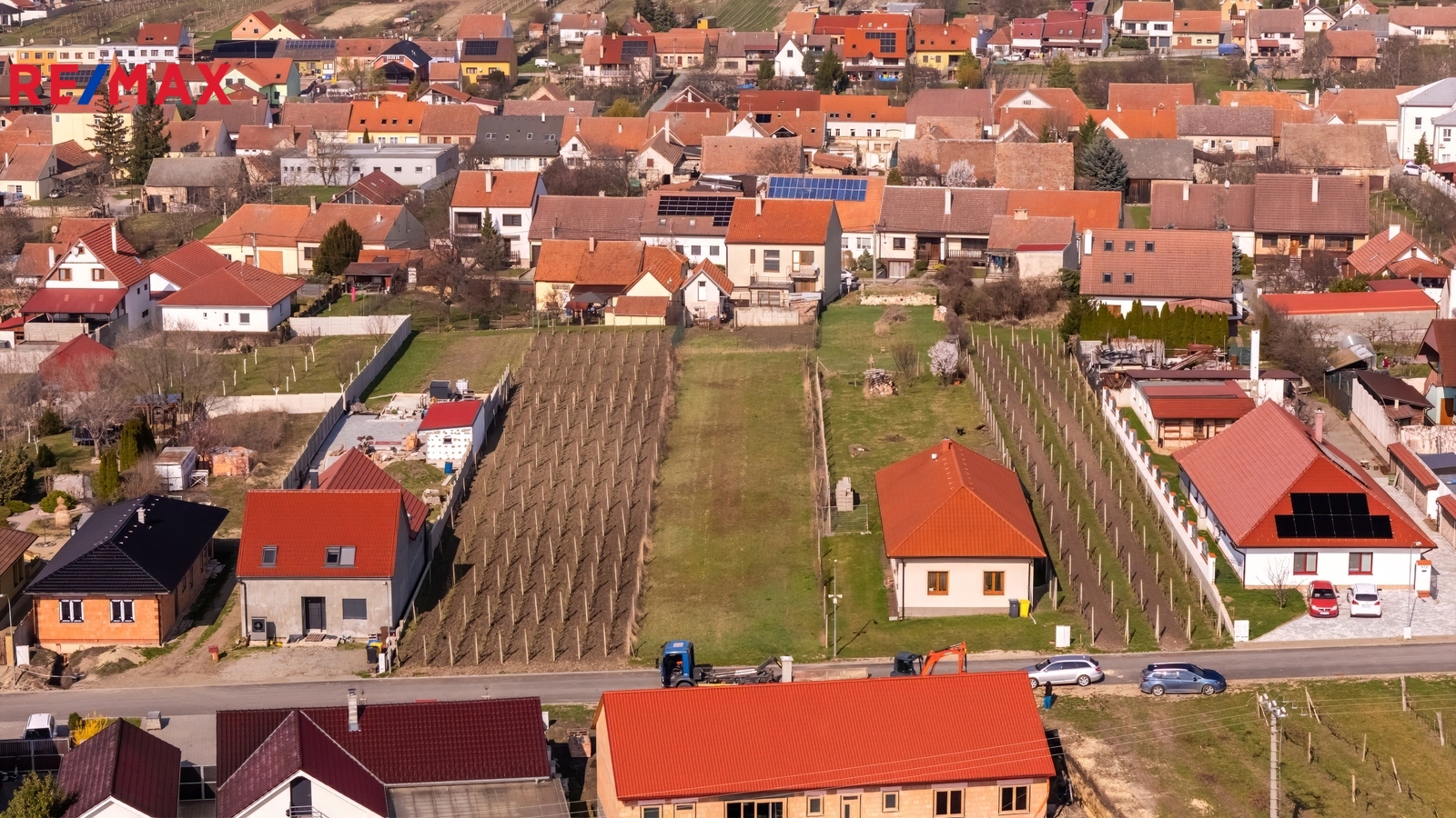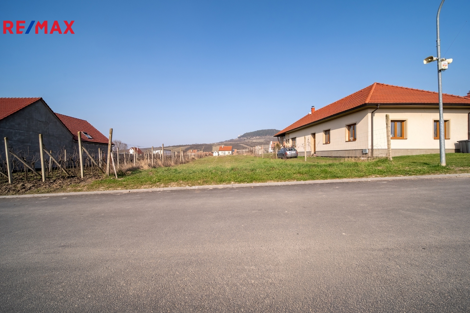 Velkou výhodou je umístění v klidné lokalitě a krásný výhled ze zahrady přímo na Pálavu. Přední část budoucího domu směřuje na jihozápad, zahrada na severovýchod.