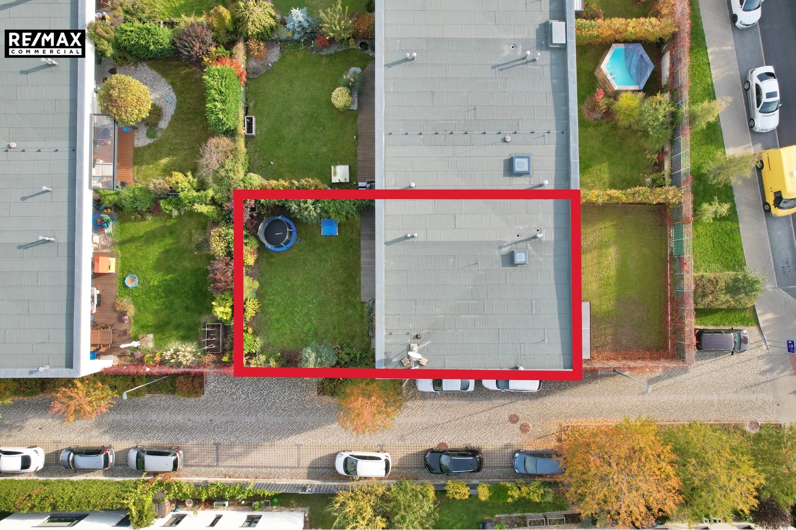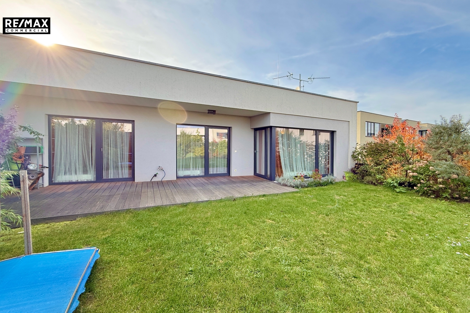 Z obývacího pokoje vedou dva samostatné vstupy na terasu o výměře 20 m², odkud je přímý vstup na zahradu se vzrostlými keři a stromy, které zaručují naprosté soukromí. Centrální zatravněná část přímo vybízí k odpočinku, pikniku či hrám dětí. Na zahradě je k dispozici elektrická zásuvka i připojení na vodu.